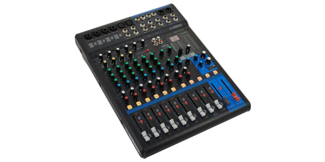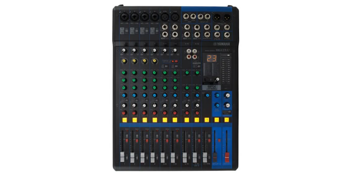 - 6 Mikrofon Eingänge (XLR/Klinke) mit +48V Phantomspeisung (Kanal 1-4 mit eingebautem Kompressor)