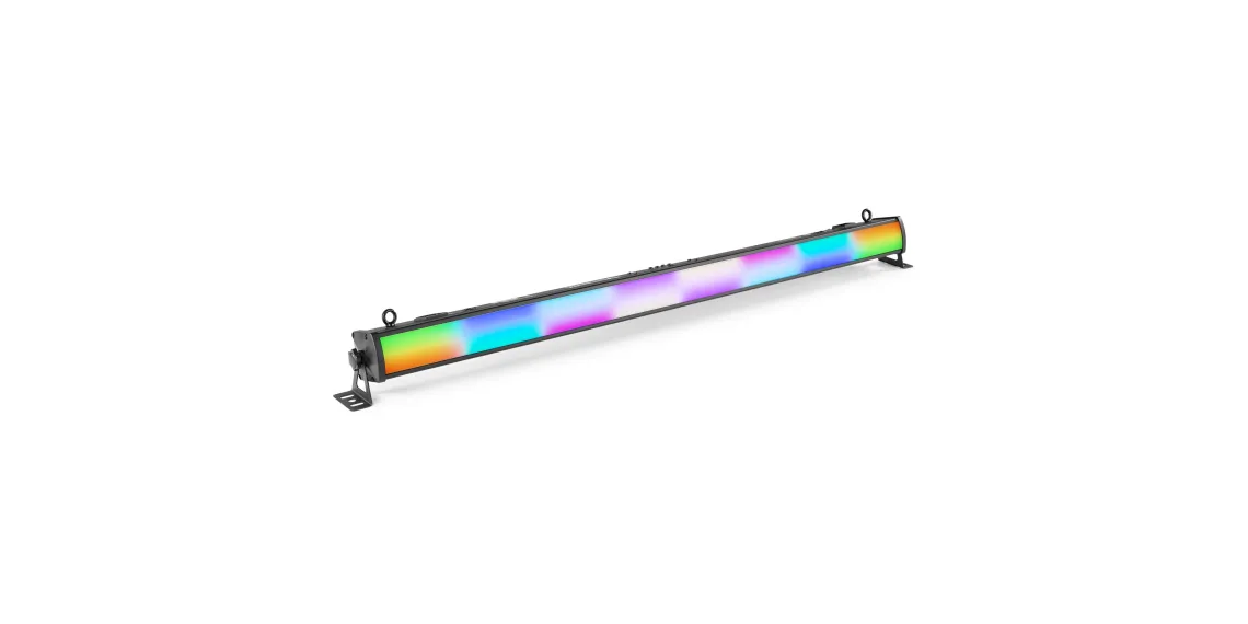 Die LCB224 ist eine LED-Leiste mit 224 SMD-RGB-LEDs. Die LEDs sind in 16 separat steuerbare Abschnitte unterteilt, wobei jeder Abschnitt im DMX-Modus über eine eigene RGB-Farbeinstellung verfügt. Bei Verwendung des Geräts im Standalone-Modus laufen vorprogrammierte Shows automatisch oder musikgesteuert ab. Wählen Sie aus vorprogrammierten automatischen Programmen oder erstellen Sie im RGB-Modus Ihre eigene Farbmischung. Der zusätzliche IEC-Ausgang ermöglicht es Ihnen, die Stromversorgung mehrerer Einheiten einfach in einer einzigen Steckdose zusammenzuführen.