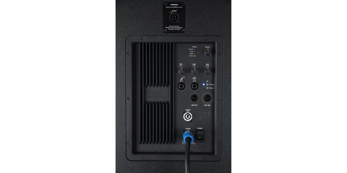- Zwei Frigga-Systeme können via TWS für kabelloses Stereo miteinander gekoppelt werden (nur Bluetooth-Audio, keine Line-/Mikrofonsignale)
