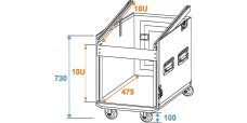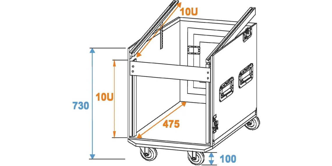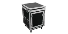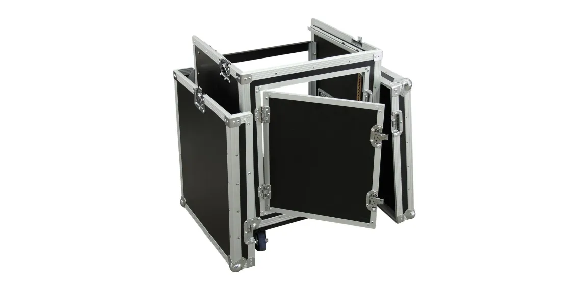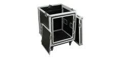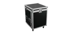 Die professionelle Lösung für ein komplettes DJ-Setup; das heavy-duty Case bietet Platz für PA, Doppel-CD-Player, Mixer, Effektgeräte und weitere 483-mm-Geräte (19"). Das Oberteil kommt mit schräg stellbaren Profilschienen mit 10 HE z. B. für Mischpulte, Bedienteile von Doppel-CD-Playern, Pultbeleuchtung. Das Unterteil bietet eine 10 HE Montagemöglichkeit z. B. für CD-Laufwerke, Verstärker, Effektgeräte, etc.