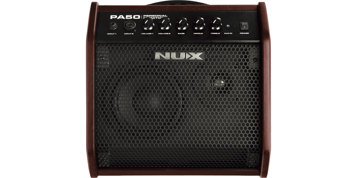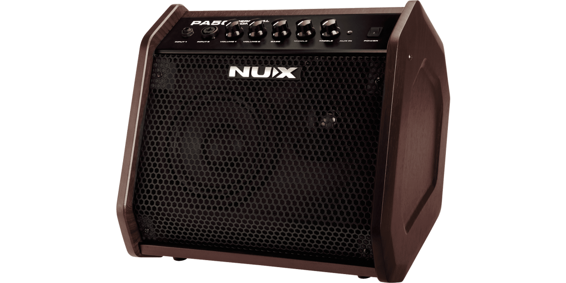 Der NUX PA-50 ist ein kompakter 50-Watt-Verstärker mit zwei Kanälen und FRFR-Wiedergabe (Full Range Flat Response). Er eignet sich für den Einsatz mit Instrumenten, Mikrofonen sowie Modeling- und Profiling-Systemen.