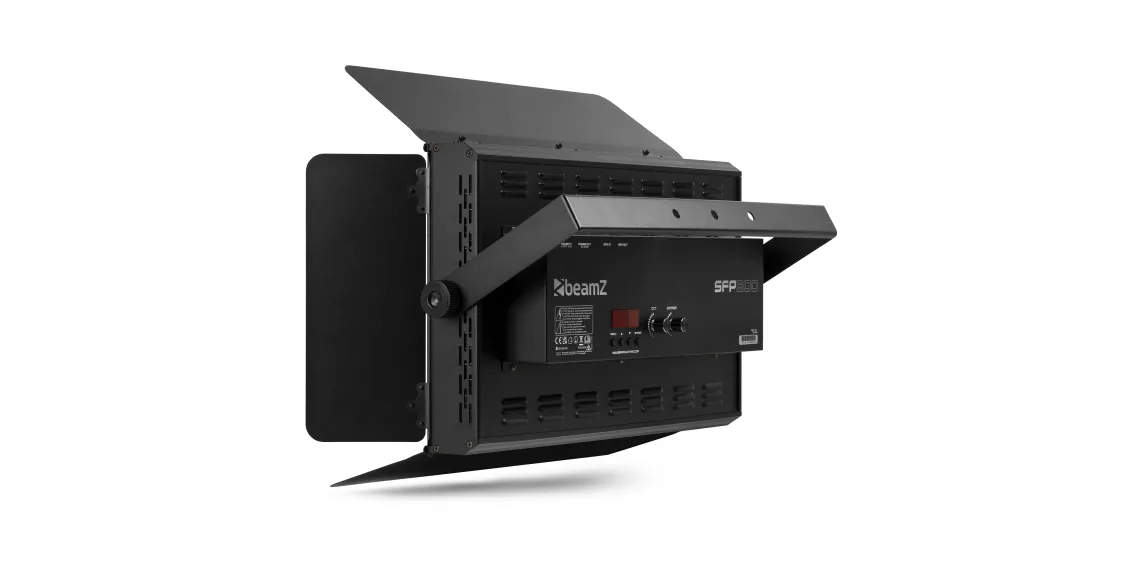 Das robuste Metallgehäuse, die vierflügeligen Torblenden zur Lichtformung sowie die stabile U-Bügelhalterung machen das SFP200 zu einer zuverlässigen Lösung für Studio, Bühne und mobile Produktionen.