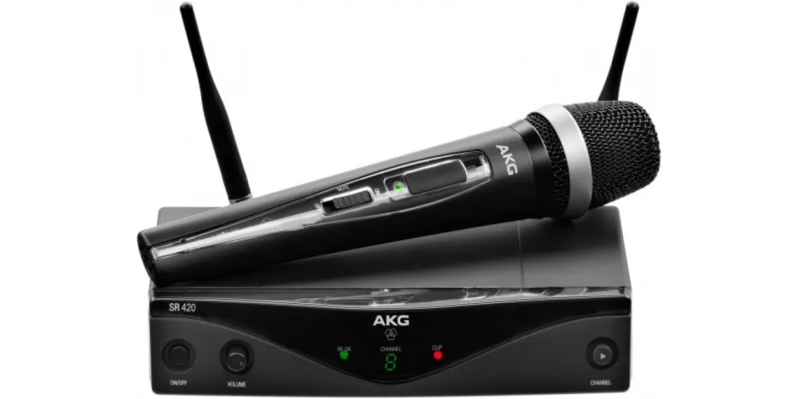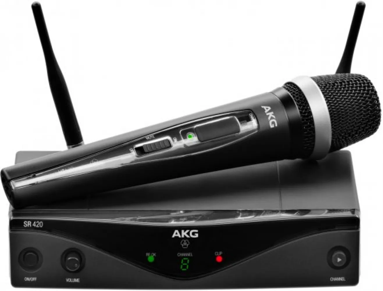 Funksystem für Gesang und Sprache, Handsender HT420 mit dymamischer Kapsel D5, Ladekontakte, SR420 Diversity Empfänger, abnehmbare Antennen, Stativadapter SA63, 2 Antennen, Netzgerät, Band M: 826,300 - 831,000 MHz