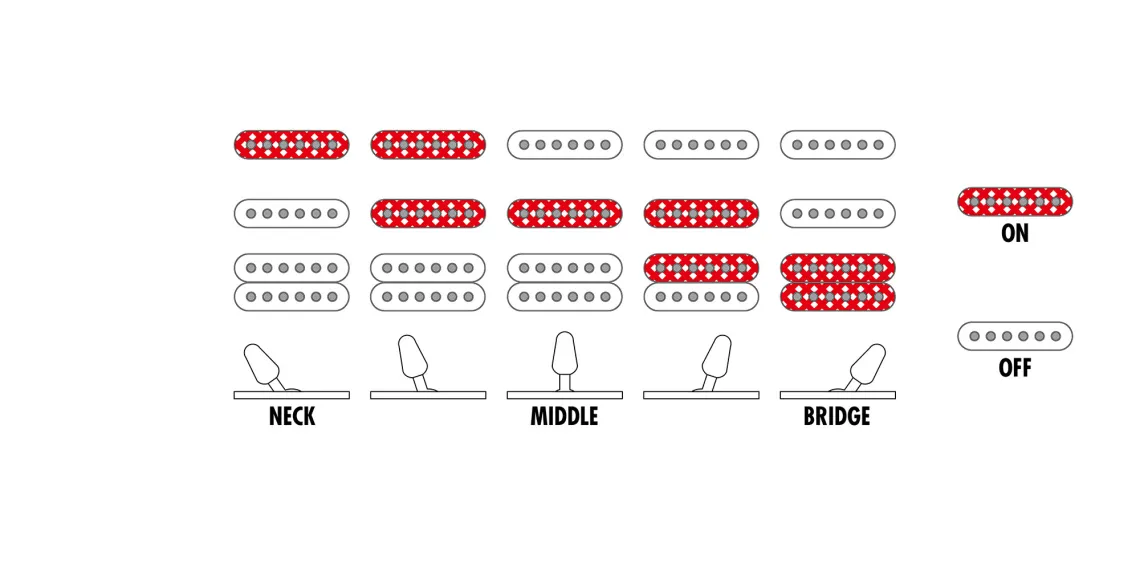 - 1 x PSND Humbucker, 2 x PSND Singlecoils