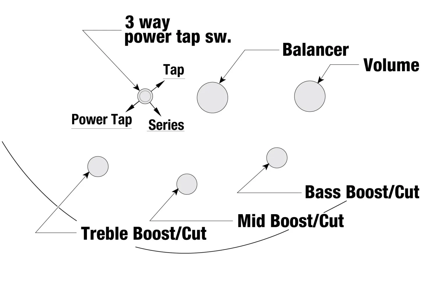 - Ibanez Custom Elektronik 3-Band EQ mit 3-Wege "Power Tap" Schalter