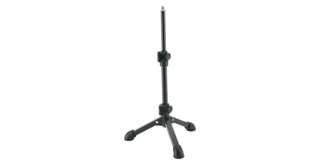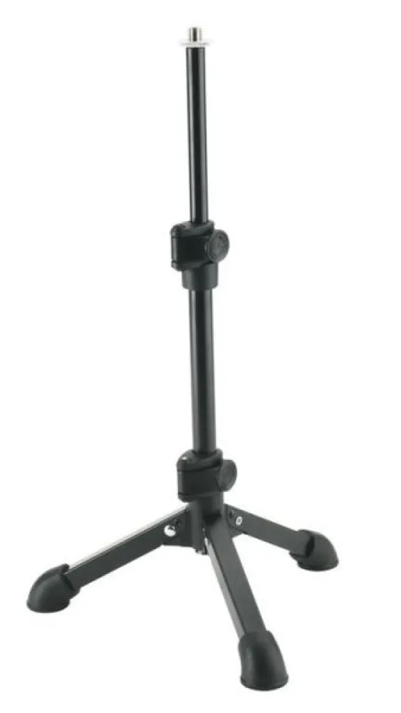 Das telekopierbare Tischstativ mit dem 3/8" Gewindeanschluss ist vielseitig einsetzbar. So können etwa Handheldrecorder oder sogar Fotoapparate befestigt werden. Die Höhe kann durch die formschönen Spannhebel zwischen 230 und 400 mm individuell eingestellt werden. Das leichte Dreibeinstativ mit den einklappbaren Füßen ist gut für den mobilen Einsatz geeignet. Die robusten Parkettschoner sorgen für einen sicheren Stand und reduzieren unerwünschte übertragungsgeräusche.