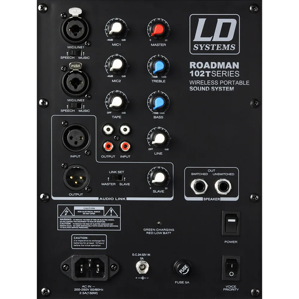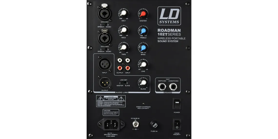 - Audio Link ermöglicht die Verbindung des RoadMan102 B6 mit bis zu 7 SLAVE-Boxen zu einem großen Netzwerk von Aktivlautsprechern.