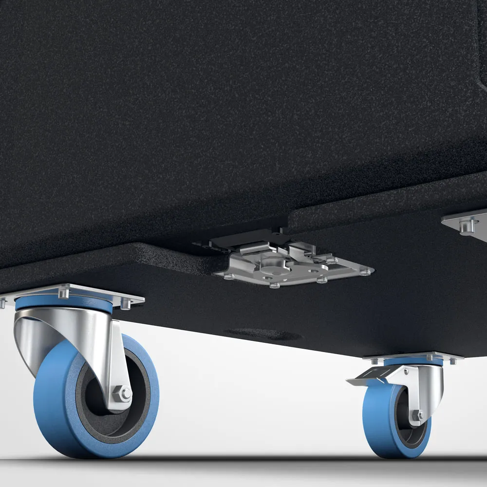 Dieses stapelbare Rollbrett ist aus 18 mm Birkenmultiplex, das durch eine Polyurea-Beschichtung extrem widerstandsfähig und langlebig ist. Es ist speziell für den Stinger® G3 Subwoofer 18" konstruiert und wird mit zwei integrierten Butterfly- Verschlüssen sicher befestigt. Durch vier Schwerlastrollen mit 100 mm Rädern lässt sich der Sub jetzt leicht bewegen. Zwei Rollen lassen sich feststellen, damit er zum Einsatz auf dem Rollbrett verbleiben kann.