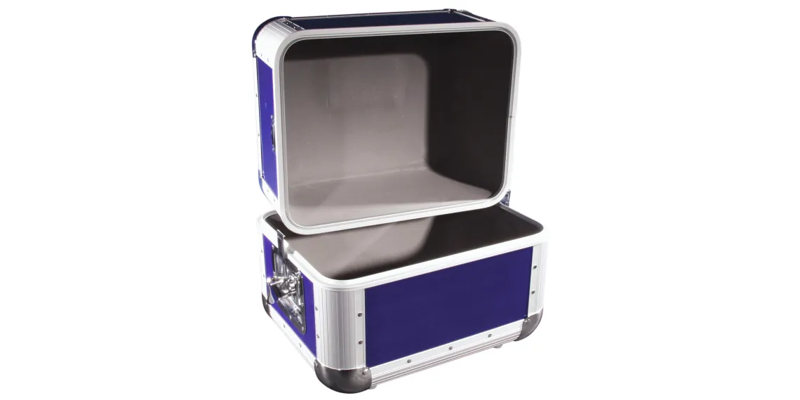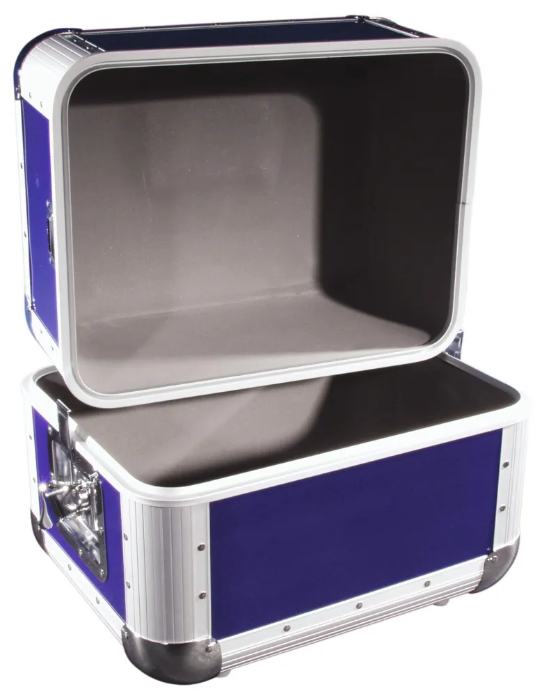 Platten-Case im dunkelblauen Aluminiumgehäuse für 80 LPs