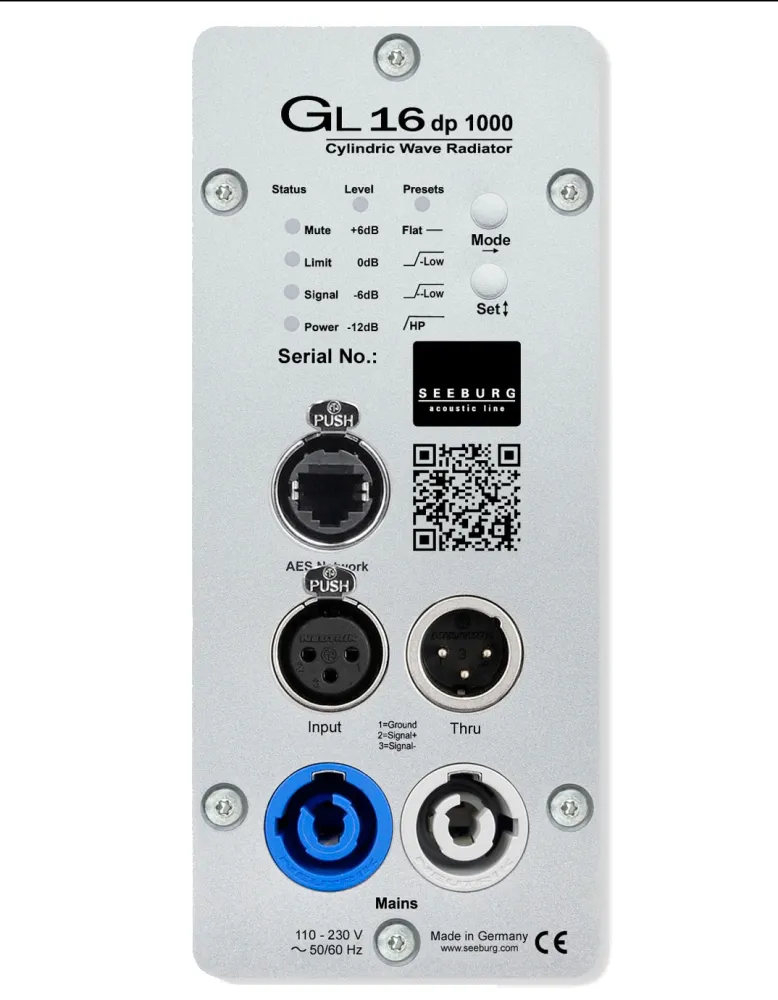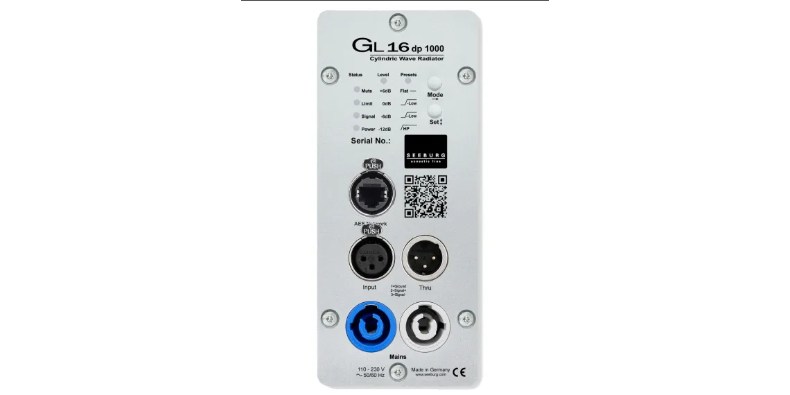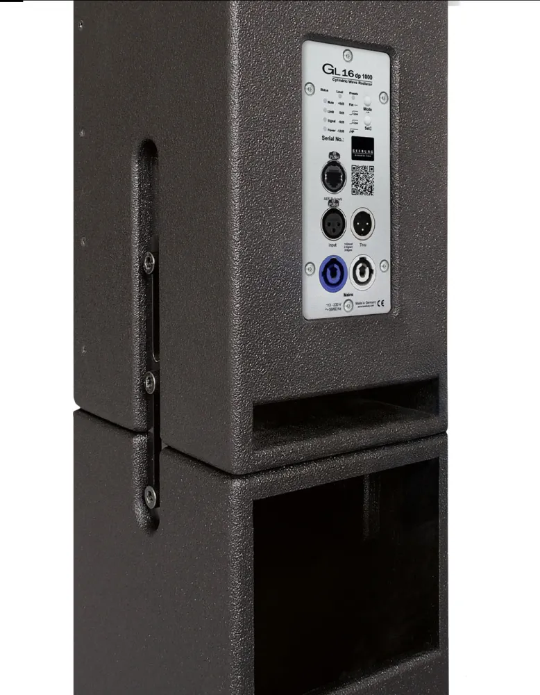 Hochleistungs-Linienstrahler für definierte Sprach- und Musikreproduktion in akustisch schwierigen Räumen, auch bei langen Distanzen. Durch die akustische Kopplung zweier hintereinander angeordneter Schallzeilen wird die vertikale Schallbündelung bis auf 15 kHz erweitert, ohne Einschränkung der Leistungsfähigkeit im unteren Frequenzbereich. Diese spezielle Konstruktion bewirkt ein besonders homogenes und symmetrisches horizontales Abstrahlverhalten und reduziert die Systembreite auf schlanke 19 cm. GL 16 Systeme sind als i-Version (100° x 7°) und c-Version (100° x 23°) lieferbar und können mittels integriertem Flugsystem je nach Anforderung beliebig miteinander kombiniert werden.