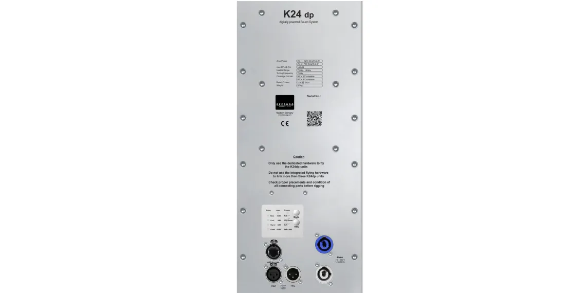 Das Hochleistungstopteil K 24 eignet sich für alle Beschallungsaufgaben, bei denen ein schneller Aufbau, sehr hohe Leistungsreserven und ein guter Sound wichtig sind. Die 2 x 12“ / 1.4“ Kombination wiegt inklusive der integrierten Flug-Hardware nur 37 kg, lässt sich untereinander zu grösseren Zeilenlängen hängen und ist äußerst kompakt. Der optionale Flugbügel lässt sich mittels Kugelsperrbolzen sehr einfach anbringen und auf den gewünschten Winkel einstellen.