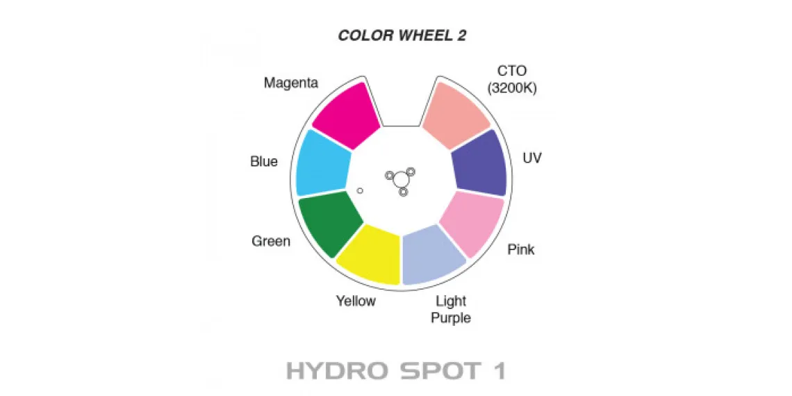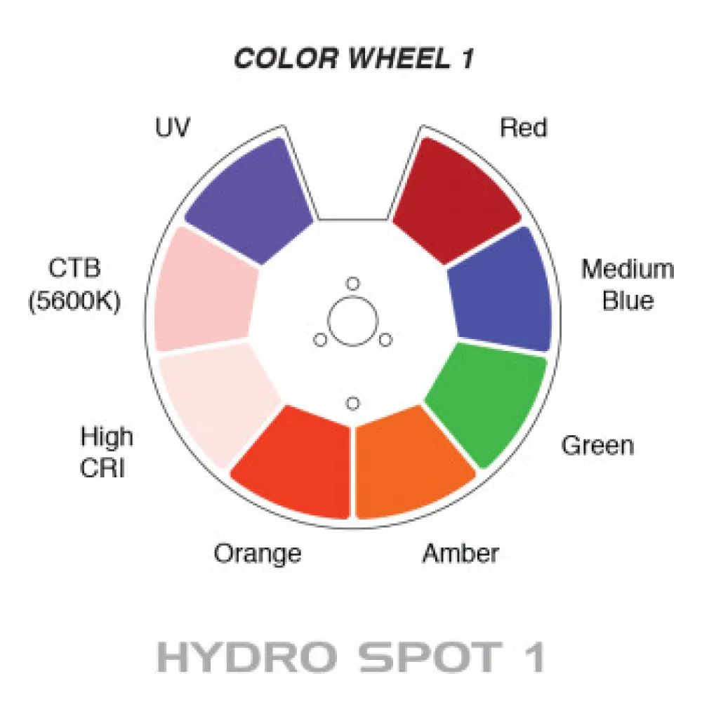 Ein umfangreicher Funktionsumfang bietet Lichtdesignern, die den Hydro Spot 1 einsetzen, eine Fülle kreativer Möglichkeiten. Das beginnt mit dem motorisierten Zoom, der einen variablen Abstrahlwinkel von 11° bis 22° ermöglicht, und geht mit der motorisierten Fokussierung einher, die sicherstellt, dass die Musterprojektionen unabhängig von der Entfernung scharf bleiben. Der Scheinwerfer verfügt über zwei unabhängige Farbräder, die jeweils mit 8 dichroitischen Farben bestückt sind, einschließlich CTO-, CTB- und UV-Filter. Außerdem verfügt er über ein separates GOBO-Rad mit 6 Steckplätzen für austauschbare, rotierende Glas- oder Aluminium-GOBO-Muster. Zwei rotierende Prismen (linear mit 5 Facetten und kreisförmig mit 6 Facetten) ermöglichen atemberaubende Lufteffekte, während zwei Frostfilter (mittel und stark) die Ränder von GOBO-Mustern verwischen bzw. einen Wash-Effekt erzeugen.