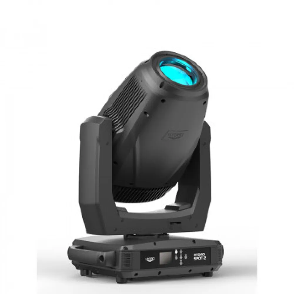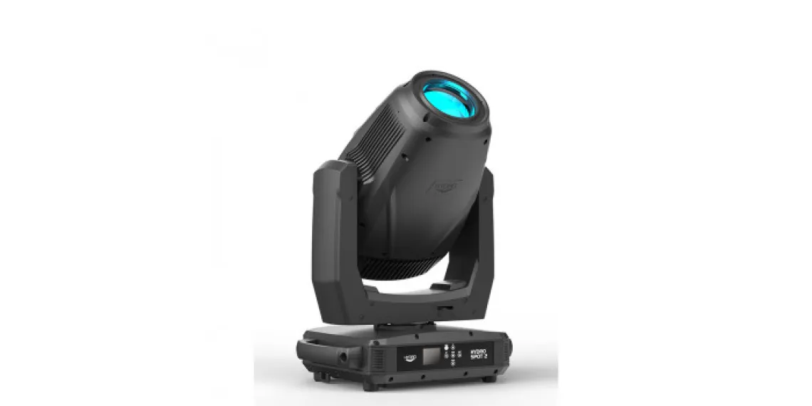 Der Hydro Spot 2 bietet zwei unabhängige GOBO-Räder, eines mit 8 statischen Mustern und das andere mit sieben drehbaren und austauschbaren GOBOs (entweder aus Aluminium oder Glas). Die motorisierte Fokussierung sorgt dafür, dass die Muster auch bei unterschiedlichen Projektionsabständen scharf bleiben, während sich mit dem integrierten Animationsrad dynamische Effekte erzeugen lassen. Mit zwei indexierten, rotierenden Prismen (linear mit 5 Facetten oder kreisförmig mit 6 Facetten) lassen sich großflächige Projektionen und Luftstrahleffekte erzeugen. Die 15.000 Lumen Weißlicht-LED-Engine des Scheinwerfers ermöglicht ein sanftes digitales Dimmen von 0-100% (mit einer Auswahl an Modi und Kurven) sowie Strobe-Effekte mit variabler Geschwindigkeit.