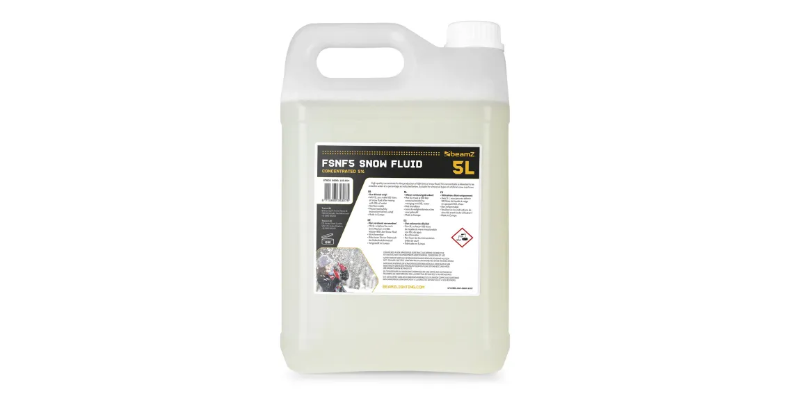 5L Hochwertiges Konzentrat zur Herstellung von 100 Litern Schneeflüssigkeit. Dieses Konzentrat wird in der unten angegebenen Menge mit Wasser gemischt. Geeignet für fast alle Arten von Kunstschneemaschinen.