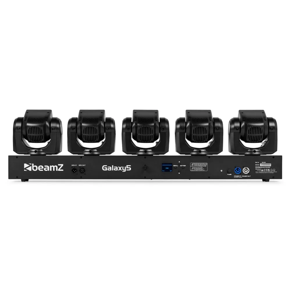 Die Galaxy Moving Head Bar ist eine kompakte Lichtleiste mit fünf unabhängig voneinander steuerbaren Moving Heads. Jeder Moving Head wird von einer leistungsstarken 40-W-RGBW-LED angetrieben, ergänzt durch 120 RGB-LEDs im Pixelring für eine spektakuläre Lichtshow. Dank ihrer flexiblen Konstruktion lässt sich die Galaxy Moving Head Bar mit der integrierten Stangenhalterung und den Omega-Winkeln einfach an einem Lichtstativ oder einer Traverse befestigen. Dieses Allround-Talent bietet vielfältige Steuerungsmöglichkeiten, darunter DMX für professionelle Setups, Soundsteuerung und Standalone-Betrieb mit praktischer Master/Slave-Funktion. Diese Vielseitigkeit macht sie zur idealen Wahl für DJs, Bands, Clubs, Bars und überall dort, wo Platz Mangelware ist.