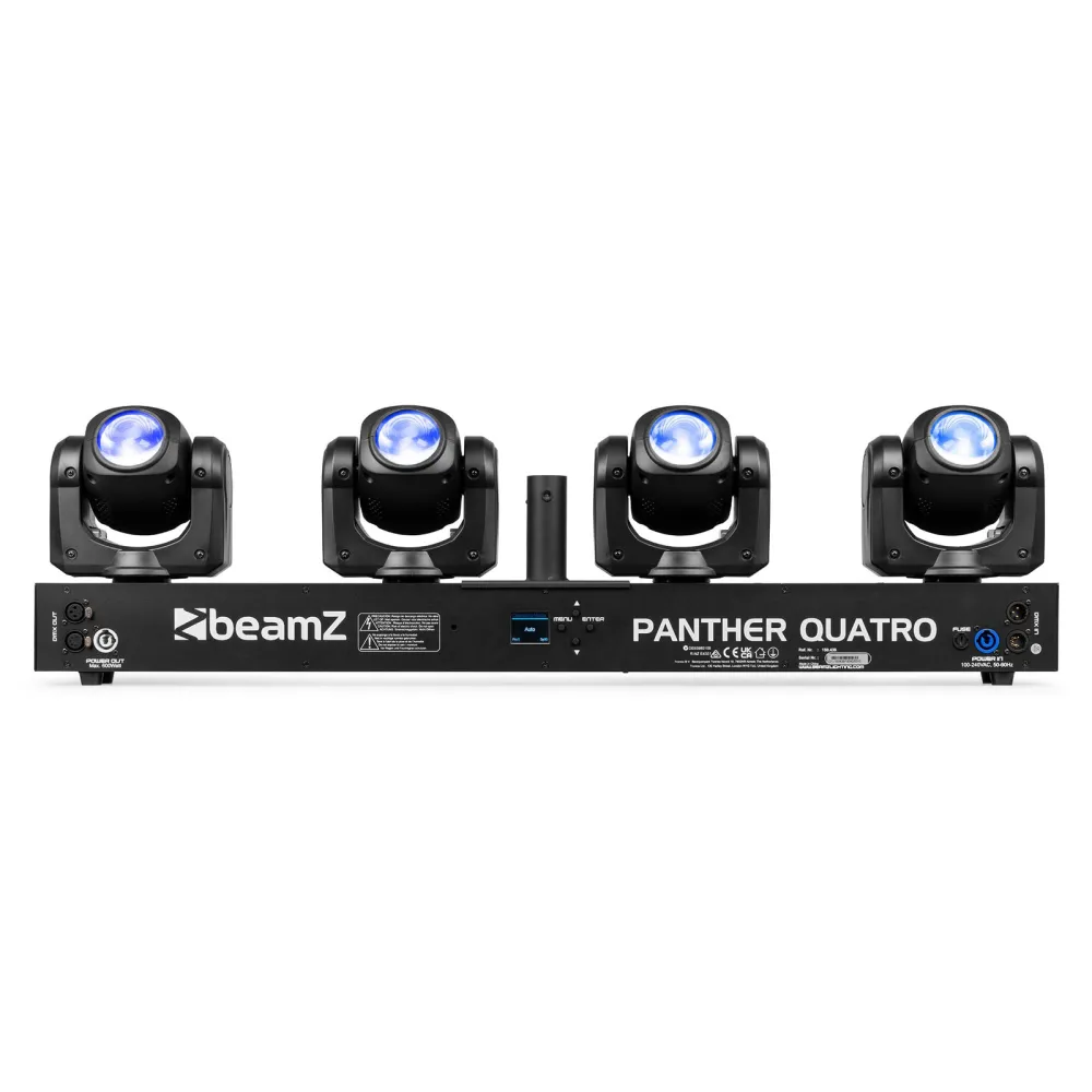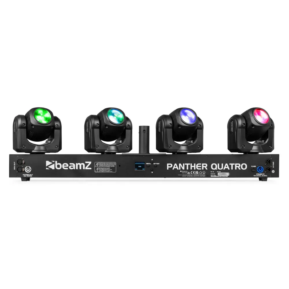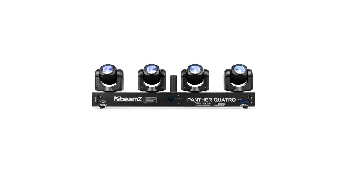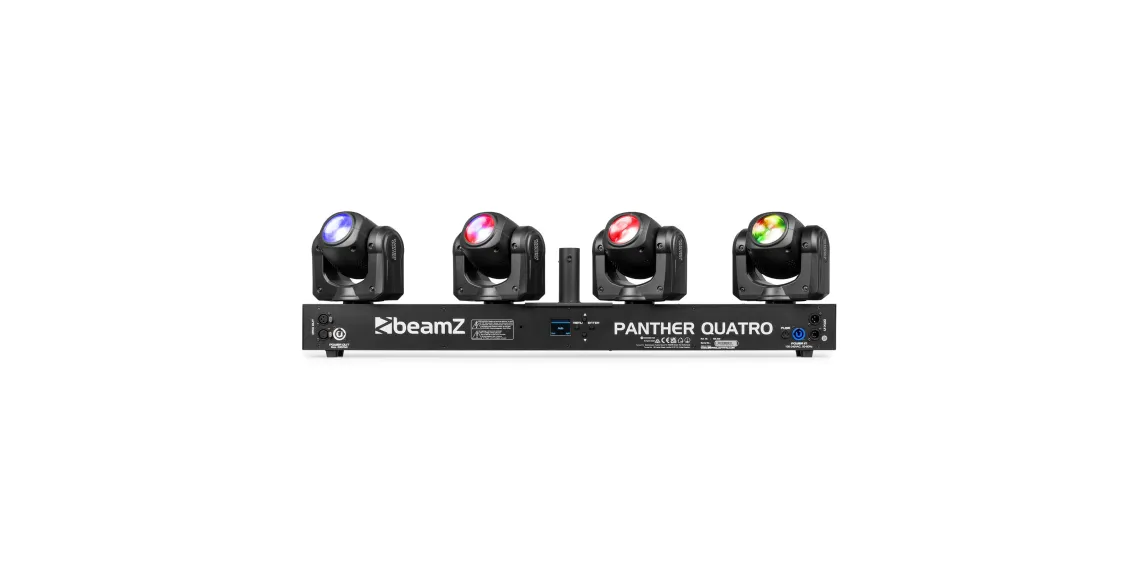 Die Panther Quatro Beam Bar ist eine kompakte Bar mit vier unabhängig steuerbaren Moving Heads, die eine spektakuläre Lichtshow garantieren. Die Bar verfügt über eine Stangenhalterung für die einfache Platzierung auf einem Lichtstativ und ist mit leistungsstarken 40W RGBW-LEDs ausgestattet, die eine aufregende Farbpalette bieten. Die Panther Quatro Beam Bar kann per DMX gesteuert, mit Soundaktivierung oder im Standalone-Modus mit der Master/Slave-Funktion verwendet werden. Sie ist vielseitig und einfach zu bedienen. Perfekt für Lichtdesigner, DJs, Bands, Clubs, Bars und Installationen mit begrenztem Platzangebot.