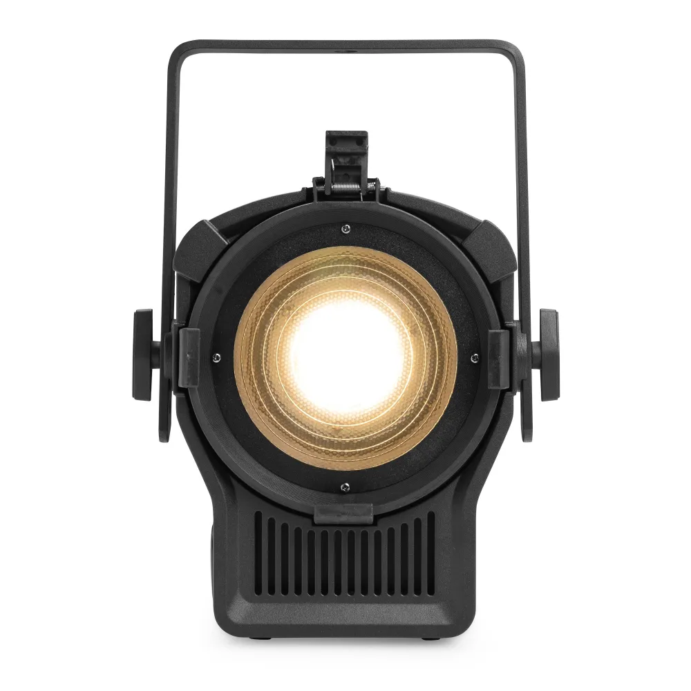 Der BeamZ BTM100WW Fresnel-Zoom nutzt eine leistungsstarke LED-Einheit, um ein gleichmäßiges, warmweißes Lichtfeld zu erzeugen und stellt damit eine moderne Alternative zu herkömmlichen Fresnel-Scheinwerfern dar. Der BTM100WW ist mit hochwertiger Optik und einem motorisierten Zoom (15–45°) ausgestattet und sowohl dimmbar als auch als Stroboskop mit bis zu 25 Blitzen pro Sekunde einsetzbar. Er eignet sich ideal für Theater, Studios, Museen, Ausstellungen oder jede Bühnenumgebung, die ein gleichmäßiges, warmweißes Licht von einem energiesparenden und besonders langlebigen Scheinwerfer erfordert. Er verfügt über Powerconnector-Ein- und -Ausgang sowie DMX-Steuerung.
