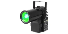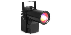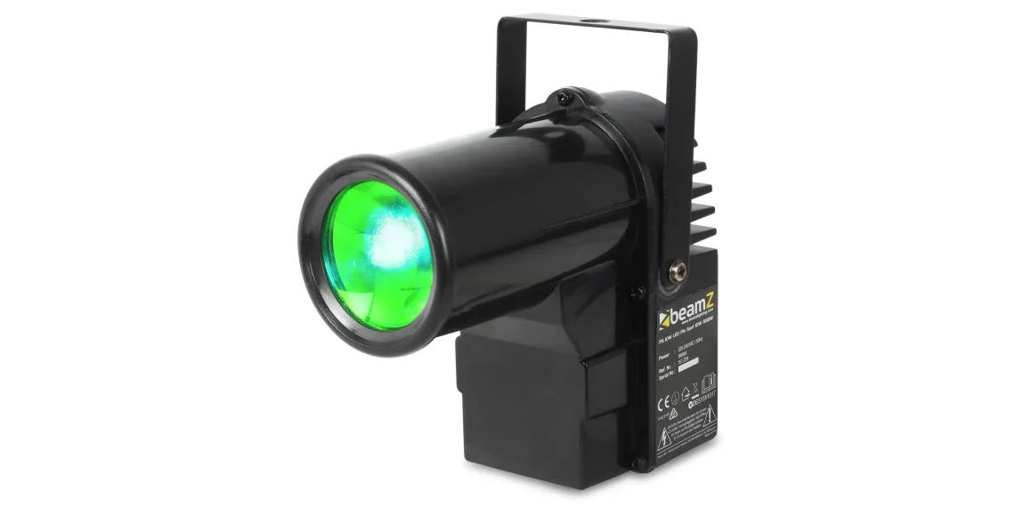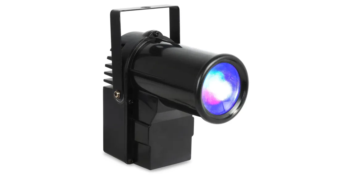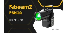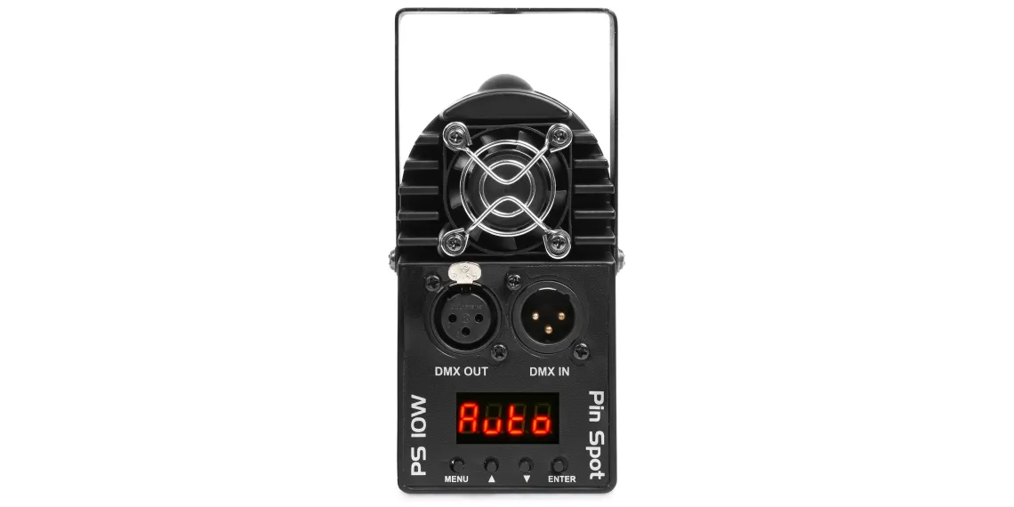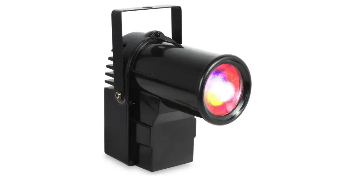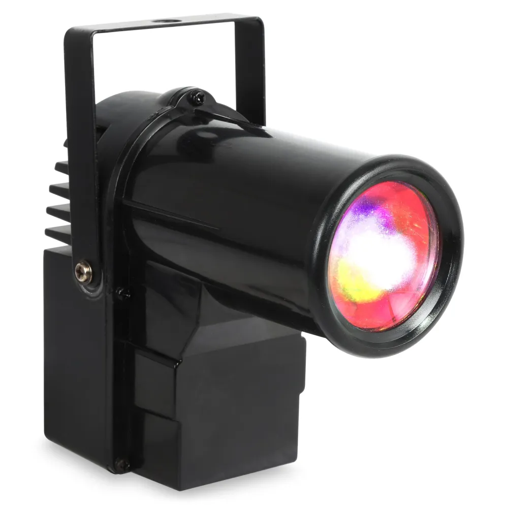 Der PS10W ist ein heller Pin-Spot mit einer 10 Watt 4-in-1-LED. Die LED erzeugt die Farben Rot, Grün, Blau und Weiß. Dank des schmalen Lichtkegels eignet er sich ideal zum Anstrahlen von Discokugeln. Beim Auftreffen des Lichtbündels auf die Spiegel entsteht der faszinierende Effekt der Milchstraße. Der Pin-Spot kann per DMX gesteuert oder eigenständig im Automatik- oder Sound-Modus betrieben werden. Die Farbe kann sich im Laufe der Zeit ändern oder auf eine bestimmte Farbe eingestellt werden. Selbst nach dem Ausschalten speichert der Spot seine letzte Einstellung.