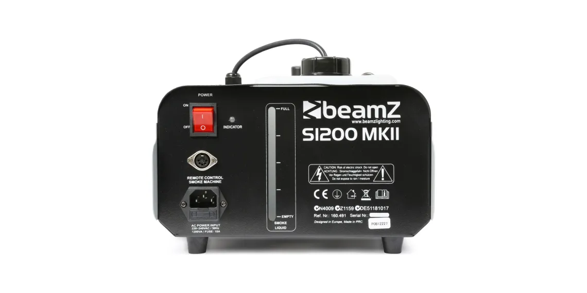 Kompakte 1200W-Nebelmaschine mit hervorragender Nebelproduktion, ideal für verschiedenste Anwendungen. Ausgestattet mit einem hochwertigen Heizelement und einem integrierten Tank für wasserbasierte Nebelflüssigkeiten. Die Nebelmaschine kann sowohl stehend auf dem Boden als auch hängend an Rigging-Systemen verwendet werden. Im Lieferumfang enthalten ist eine spezielle Timer-Fernbedienung für einen komfortablen „Set-and-Forget“-Betrieb – perfekt für DJs, Bands und Veranstaltungsorte. Der Flüssigkeitsstandanzeiger auf der Rückseite ist gut sichtbar, sodass Sie nie unerwartet ohne Flüssigkeit dastehen.