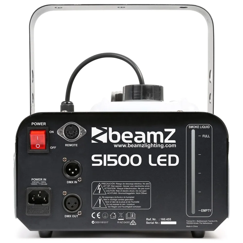 Eine Leistungsstarke 1500W DMX-Nebelmaschine mit 9x 3W RGB LED-Effekt für eine atemberaubende, funkelnde und farbenfrohe Lichtshow. Mit hervorragender Nebelproduktion, ideal für verschiedenste Veranstaltungsorte. Ausgestattet mit Timersteuerung, einem hochwertigen Heizelement und einem großen integrierten Tank für Nebelfluid. Wird mit Fernbedienung geliefert.