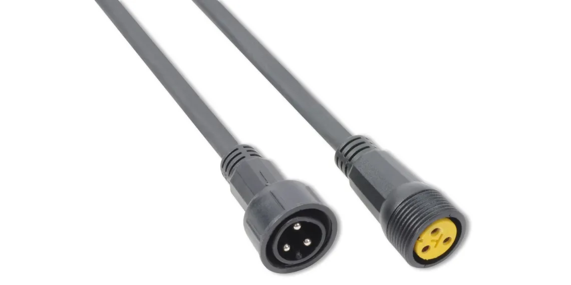 5 Meter Stromverlängerungskabel für Beamz Professional Außenbeleuchtung. Das Kabel kommt mit IP65 wasserdichten Anschlüssen zur Verwendung mit Tronios IP Farbunits und Wall Washers.