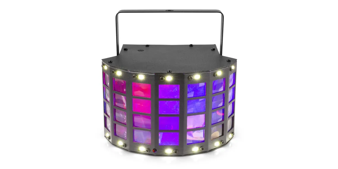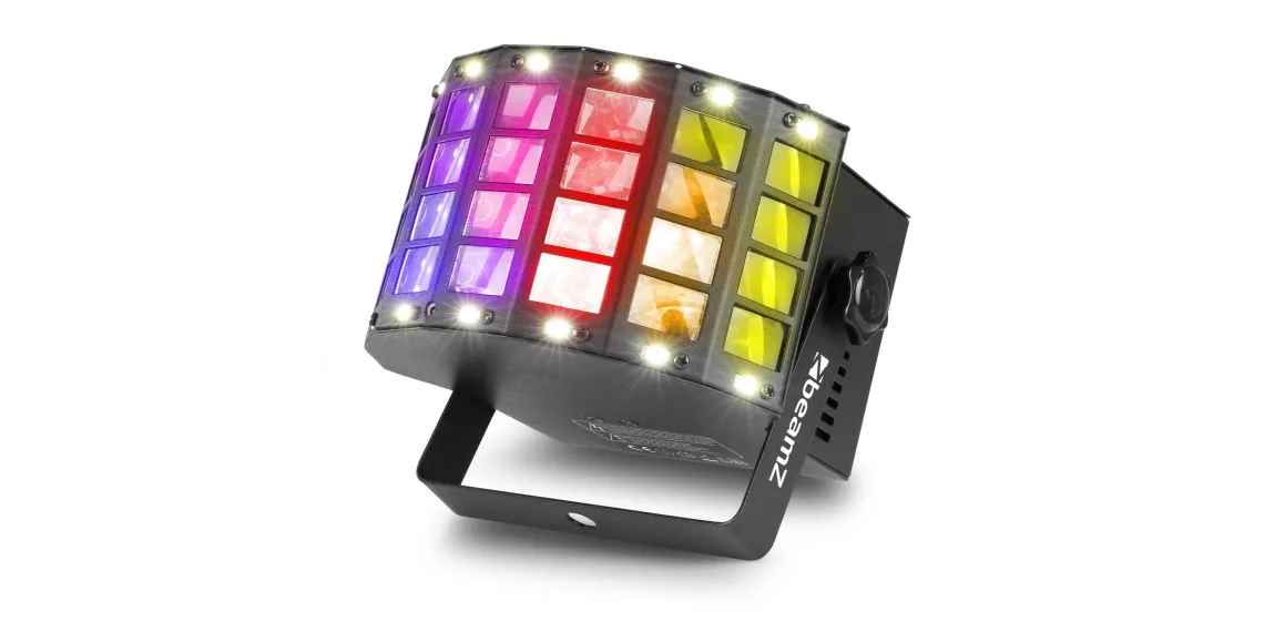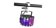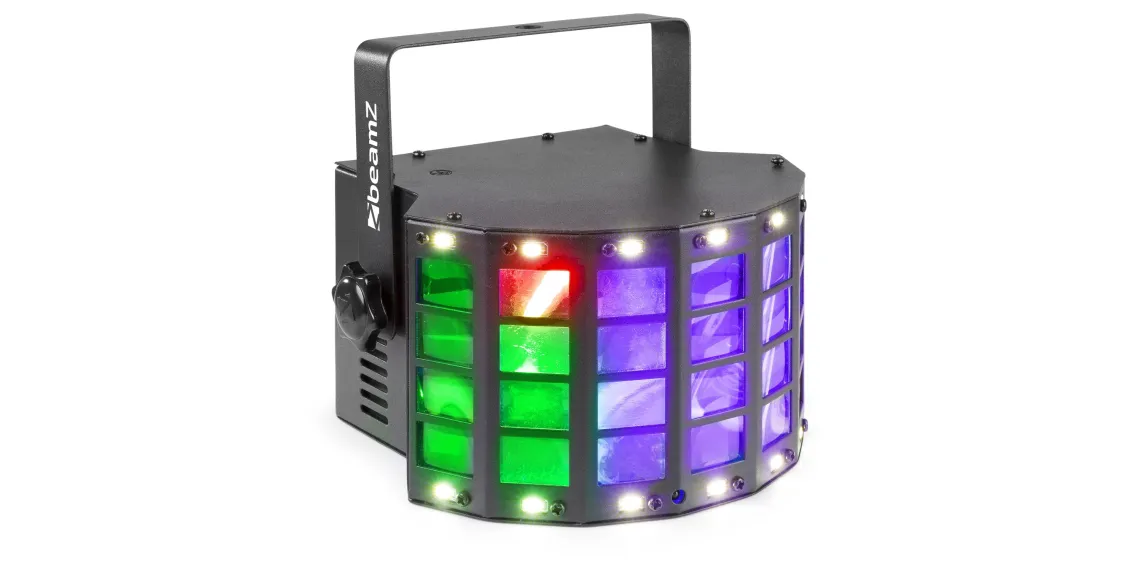 Der LED Derby mit Stroboskop kombiniert die Kraft zweier spektakulärer Effekte in einem! Dieser Lichteffekt erzeugt 28 Strahlen in 4 verschiedenen Farben, insgesamt also bis zu 112 Strahlen. Er verfügt außerdem über SMD-LEDs, die auffällige Stroboskopeffekte und Lauflichter erzeugen. Der LED Derby ist mit vorprogrammierten Shows ausgestattet, darunter auch Sound-Active-Modi. Für dynamischere Effekte und die Verwendung mit größeren Beleuchtungssystemen gibt es einen 6-Kanal-DMX-Modus, mit dem Sie jeden integrierten Lichteffekt steuern können. Ein großartiger Effekt für DJs, Entertainer und kleine bis mittelgroße Veranstaltungsorte.