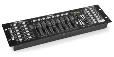 Ein Controller für verschiedene DMX Lichteffektgeräte. Kommt mit 192 DMX Kanäle, 30 Banken in die 240 Szenen gespeichert werden können usw.. Programme können Sound aktiviert, Automatik, Manuell und per MIDI abgeschlossen werden. Klare LED-Anzeige für Programmierung, Musik und automatische Trigger-Einstellung.