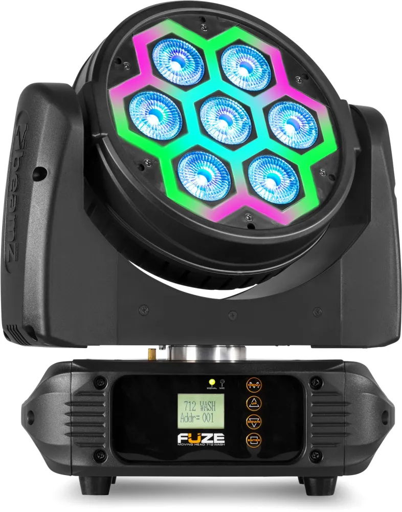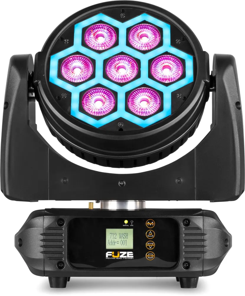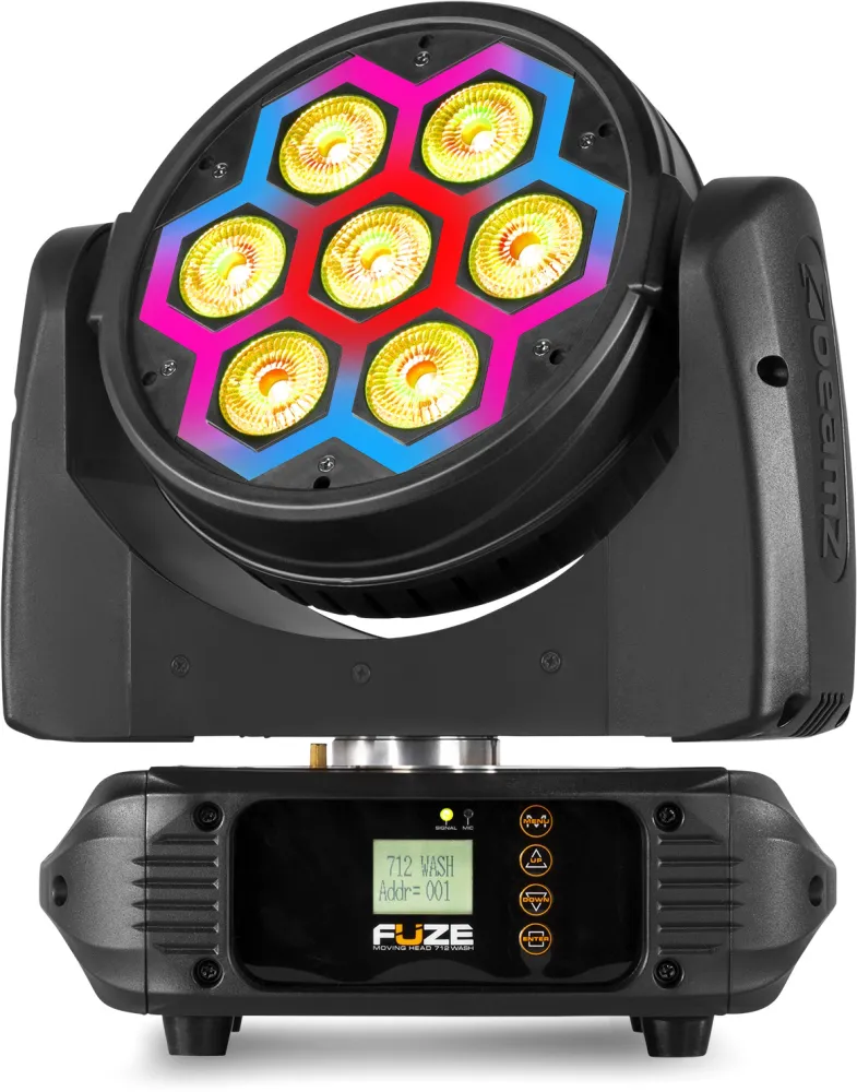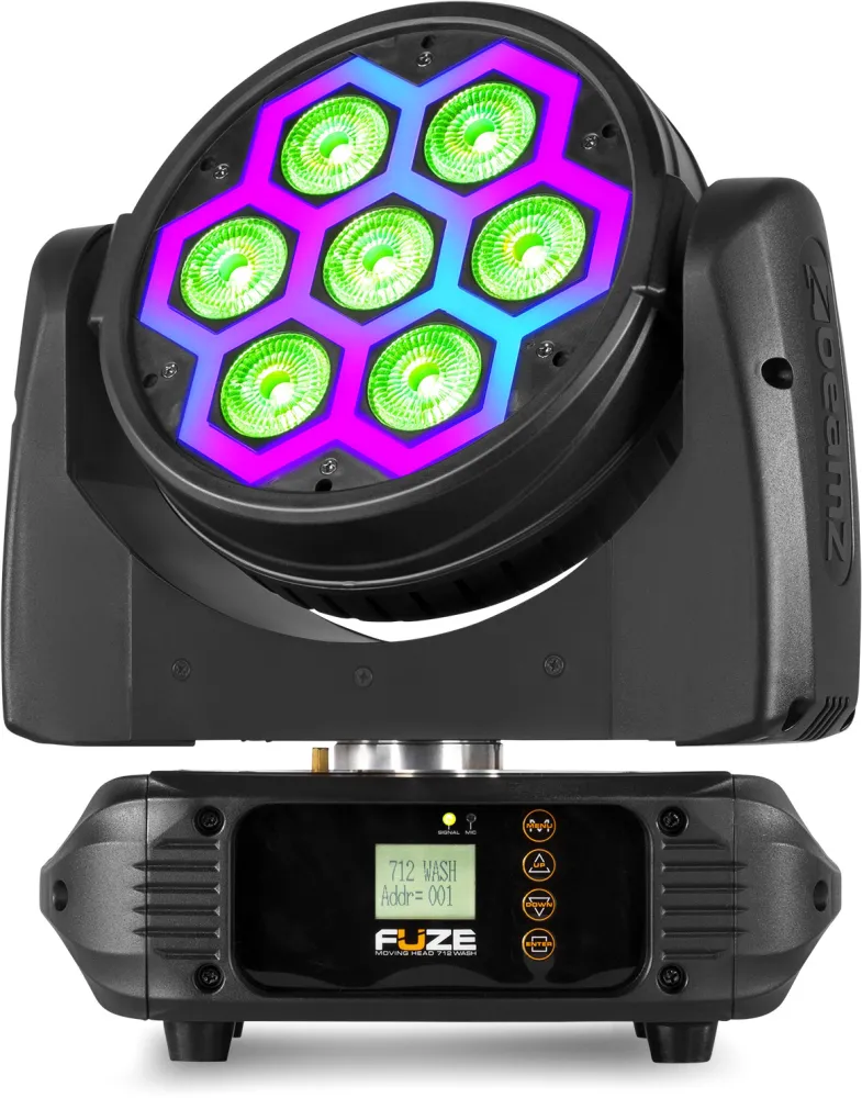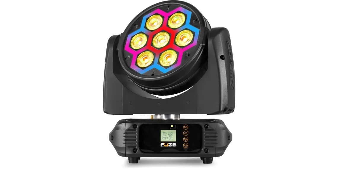 Die Fuze-Serie besteht aus einer Reihe kompakter Moving Heads, die mit einer leistungsstarken LED-Lichtquelle ausgestattet sind, die beeindruckende Farbwaschungen und atemberaubende visuelle Effekte garantiert. Eine exakte Positionierung ist durch die 16-Bit-Bewegungsauflösung möglich (540-Grad-Schwenk und 180-Grad-Neigung). Diese Scheinwerfer sind in einem kompakten Gehäuse untergebracht und eignen sich ideal für Lichtdesigner, DJs, Bands, Clubs, Bars und Installationen, bei denen eine geringe Stellfläche und ein geringes Gewicht wichtig sind. Er kann über DMX gesteuert werden, mit Soundaktivierung oder im Standalone-Modus mit der Master/Slave-Funktion.