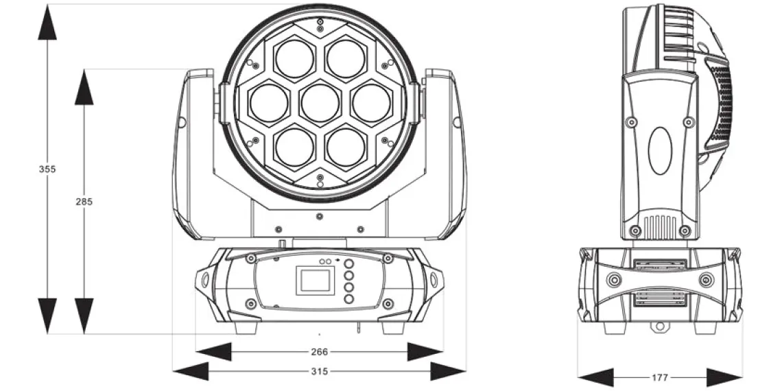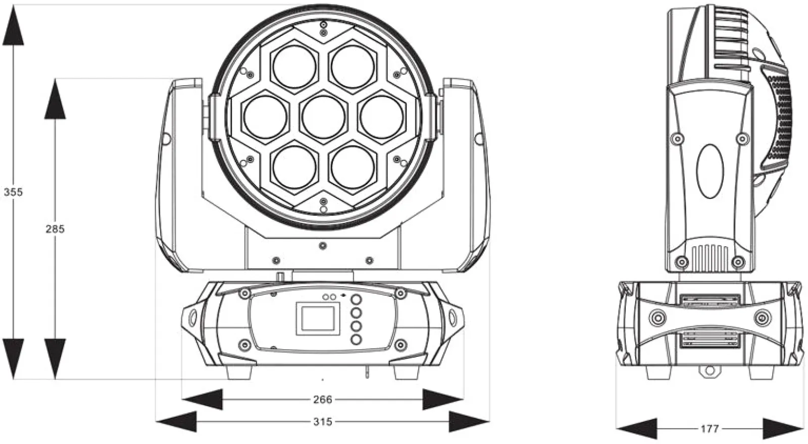 - Zubehör: DMX-Kabel, Halterung, Netzkabel, Sicherheitskabel