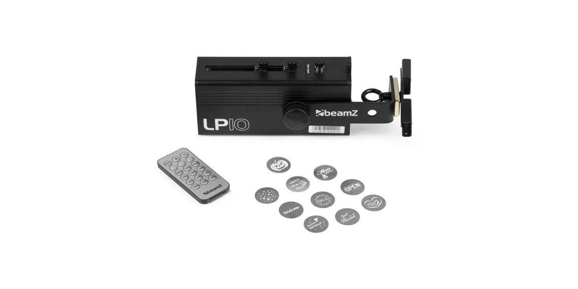 Der LP10 ist ein batteriebetriebener LED-Logoprojektor. Von Messen bis zu Schaufenstern ist dieser Logoprojektor perfekt für eine Vielzahl von Umgebungen geeignet. Zum Beispiel zum Projizieren von Bandlogos, Eventgrafiken und Ankündigungen auf Wände, Decken, Böden usw. Verabschieden Sie sich von Stromkabeln und Einschränkungen. Der eingebaute Akku sorgt für einen problemlosen Betrieb, sodass Sie Ihr Logo oder eines der mitgelieferten Logos überall dort projizieren können, wo Sie es benötigen, ohne durch Steckdosen eingeschränkt zu sein. Einstellbarer Zoom und Projektionswinkel bieten Flexibilität, sodass Sie Ihre Marke auf Wände, Böden oder sogar die Decke projizieren können. Mit der mitgelieferten drahtlosen Fernbedienung können Sie die Dimmvorgänge steuern. Der LP10 ist mit einem Magnetfuß ausgestattet, der sich an den meisten Metalloberflächen anbringen lässt, und einem Scherenclip, der sich an abgehängten Deckenstützen anbringen lässt, um eine schnelle Einrichtung und Kabelführung zu ermöglichen.