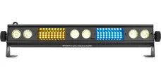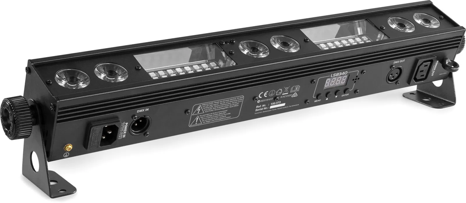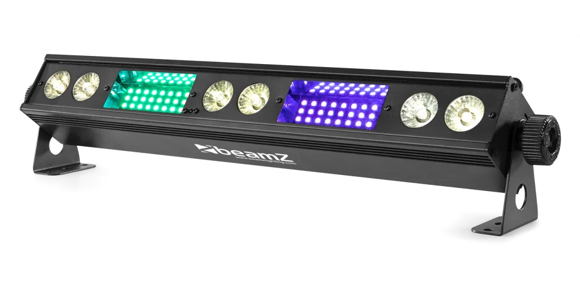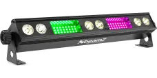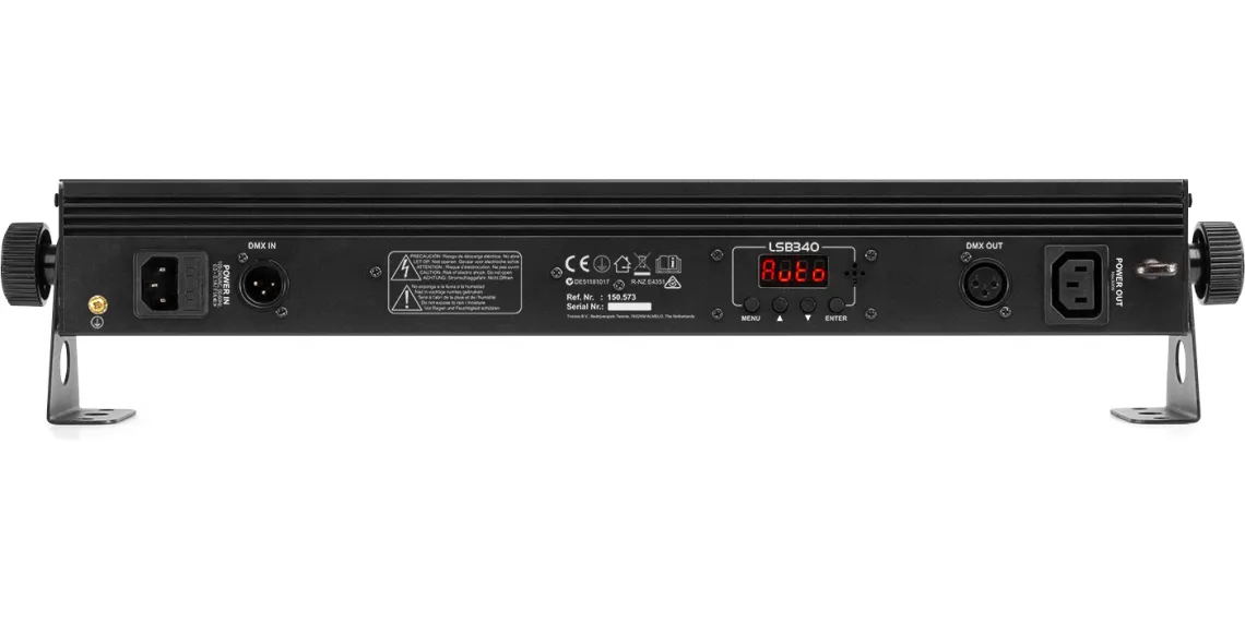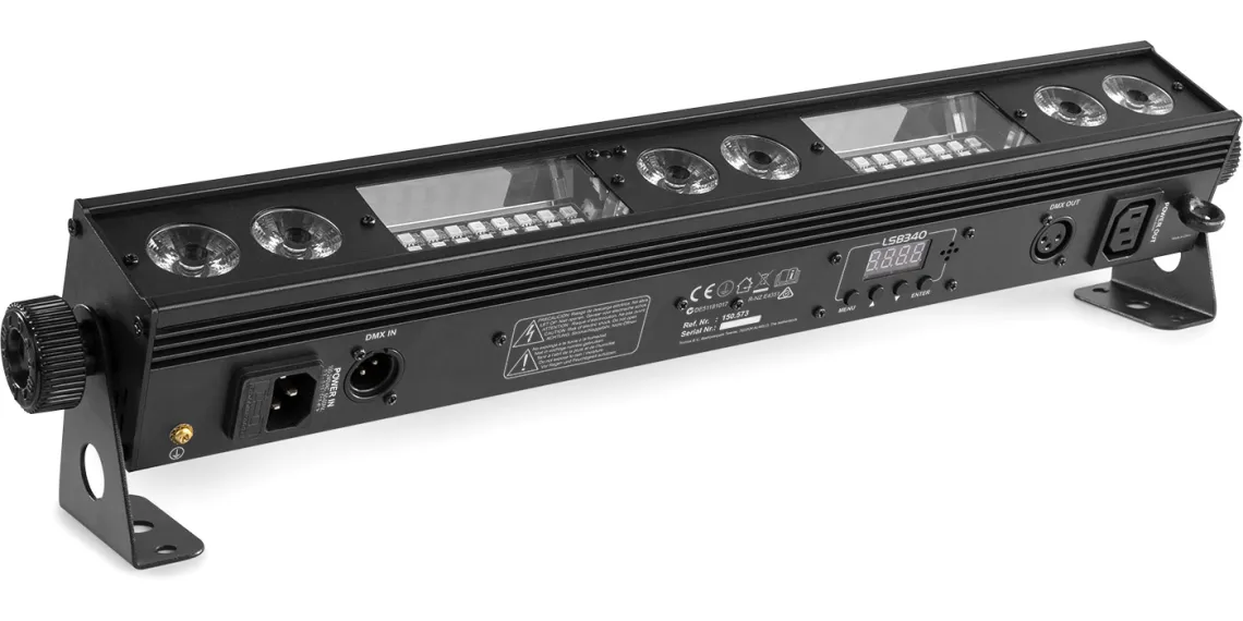 Der LSB340 ist eine 2-in-1-Leuchte, die mit 6x 3W warmweißen LEDs in Kombination mit 54x RGB-SMD-LEDs ausgestattet ist. Diese Kombination gewährleistet eine hohe Lichtintensität und eine optimale Farbmischung. Das Gerät kann in verschiedenen Modi betrieben werden: DMX, Standalone, Soundaktivierung und Master/Slave. Das Gerät verfügt über eine IR-Fernbedienung, Strobe-, Geschwindigkeits-, Blitz- und Dimm-Modi sowie über mehrere integrierte Programme, die durch Musik ausgelöst werden. Die Geräte können einfach miteinander verbunden werden (Daisy Chain) und in verschiedenen Truss-Strukturen montiert oder als Stand-Alone-Effekt verwendet werden.