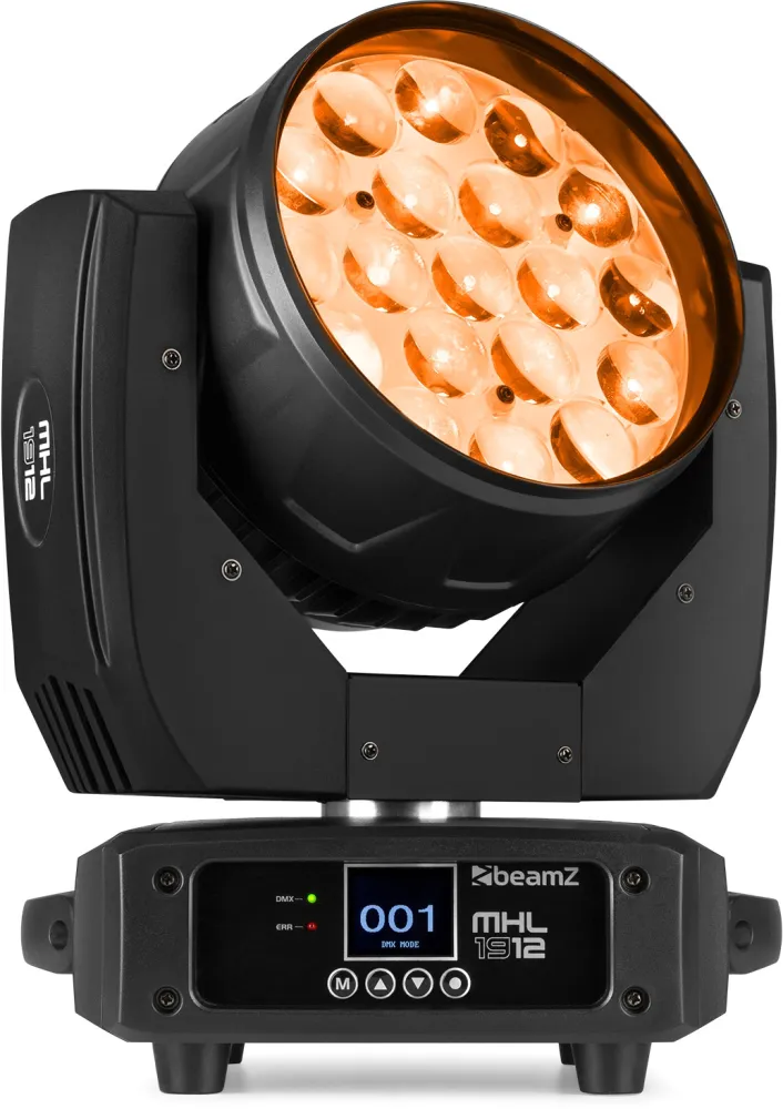 Der BeamZ MHL1912 LED-Moving Head ist ein leistungsstarker Wash-Moving Head, der jede Bühne oder Tanzfläche beleuchtet. Der MHL1912 wird von 19x 12W RGBW (4-in-1) LEDs mit 3 individuell steuerbaren Sektionen betrieben, um auffällige Effekte und Farben zu erzeugen. Der lineare, motorisierte Zoom ermöglicht es Ihnen, einen Strahl bis zu 8° zu fokussieren oder bis zu 30° zu öffnen, um einen größeren Bereich mit Leichtigkeit abzudecken. Ausgestattet mit DMX, integrierten Automatikprogrammen und Voreinstellungen, einschließlich eines Master/Slave-Modus. Perfekt für Bühnenshows, Produktionen, Events, DJs, Bands, Veranstaltungsorte und mehr.