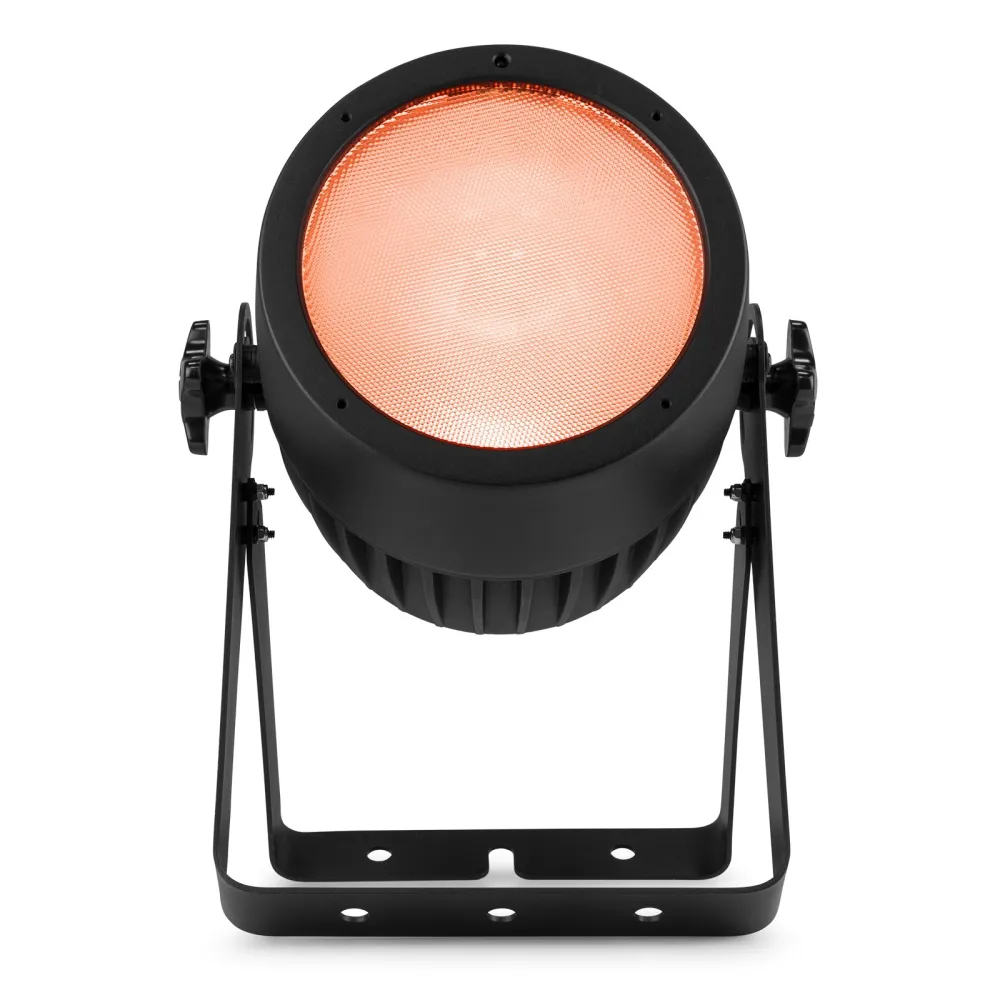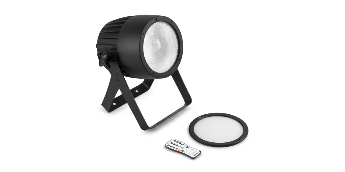 Der COB150 ist ein robuster Scheinwerfer mit einer leistungsstarken 150-W-COB-LED. Der COB150RGBW erzeugt intensive Farben, die jede Bühne, Party oder Veranstaltung erhellen. Die verwendete COB-Technologie sorgt für sehr intensives Licht, das über mehrere kleine LED-Chips erzeugt wird, die in einem winzigen, aber sehr leistungsstarken Modul zusammengefasst sind. Durch Mischen von Rot, Grün und Blau kann jede beliebige Farbe erzeugt werden, während durch die Einbeziehung von Weiß entweder reines Weiß oder die Verstärkung jeder anderen Farbe erzeugt werden kann. Die Hochfrequenz-LED-Dimmung erzeugt sanfte Überblendungen und gewährleistet einen flimmerfreien Betrieb unter einer Kamera. Er ist mit zwei Montagehalterungen und einer Fernbedienung ausgestattet und verfügt über ein gut strukturiertes, leicht zu navigierendes LED-Bedienfeldmenü mit 4 Tasten, die die Programmierung sehr einfach machen! Inklusive zusätzlichem 60°-Diffusorfilter.