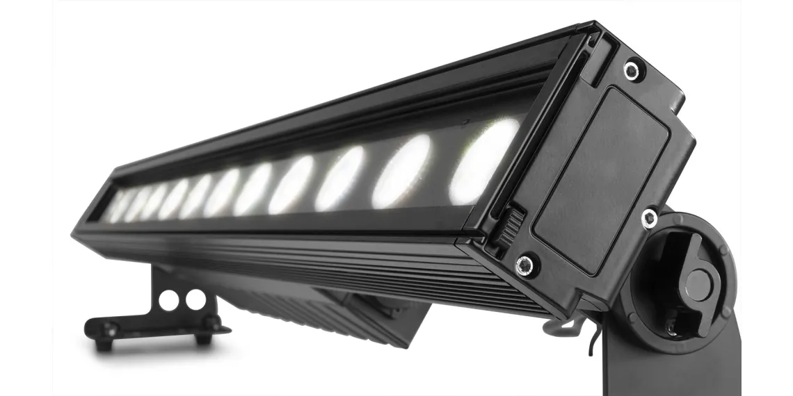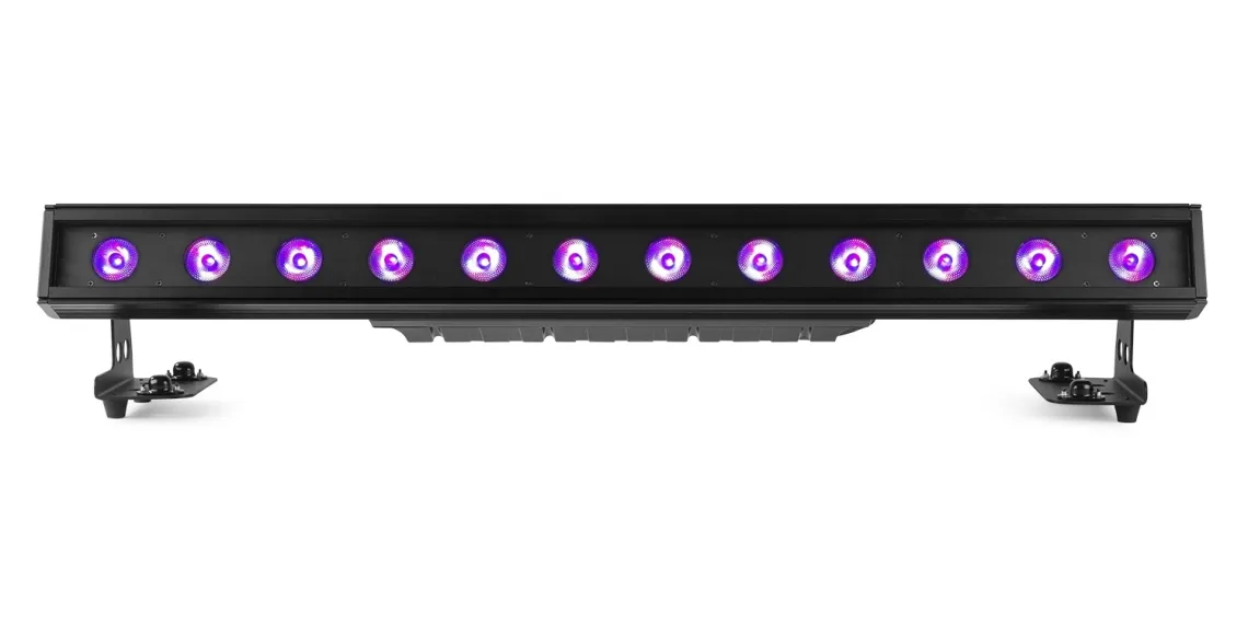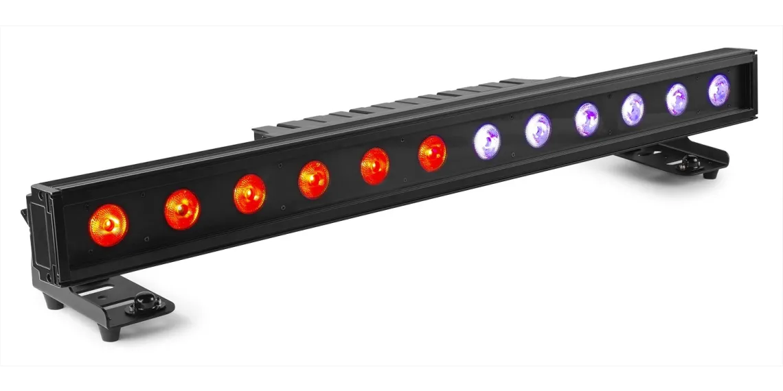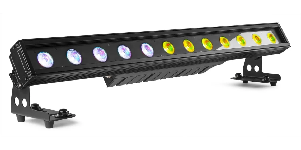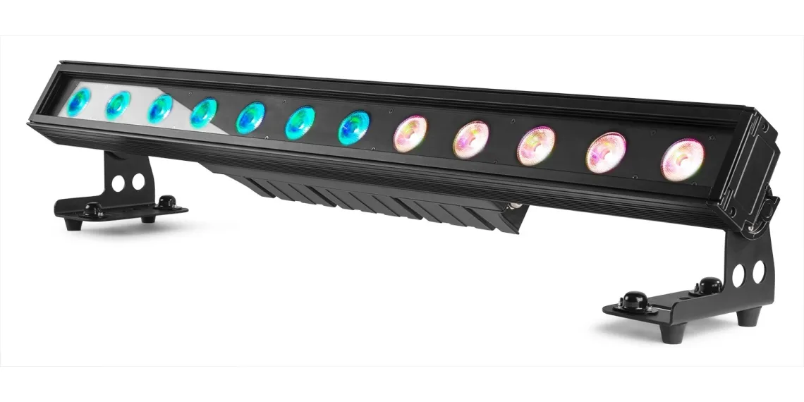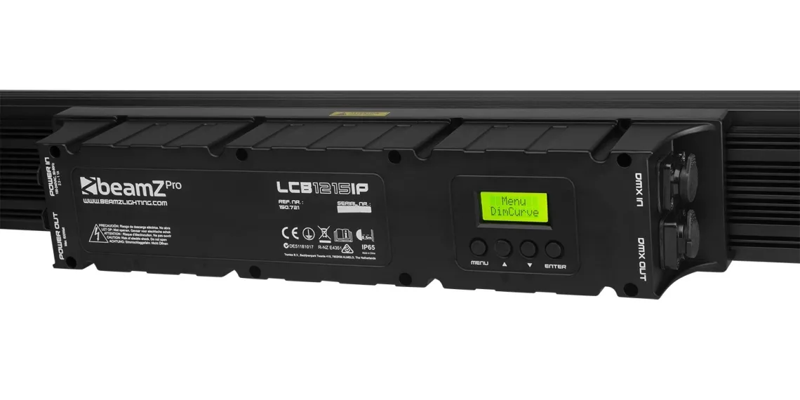 Die LED-Leiste LCB1215IP verfügt über 12 x 15 W 6-in-1-LEDs, die eine hohe Lichtintensität und optimale Farbmischung gewährleisten. Dieses Gerät kann sowohl im Innen- als auch im Außenbereich eingesetzt werden und kann in verschiedenen Steuerungsmodi wie DMX, Standalone und Master/Slave verwendet werden. Es verfügt über Stroboskop-, Chase-, Dimm- und Fading-Modi und hat verschiedene integrierte automatische Programme. Die Einheiten können einfach in einer Daisy-Chain miteinander verbunden werden. Es sind auch Streulinsen erhältlich, mit denen die fokussierten Strahlen in einen weicheren Wash-Effekt umgewandelt werden können, um Blendung zu reduzieren.