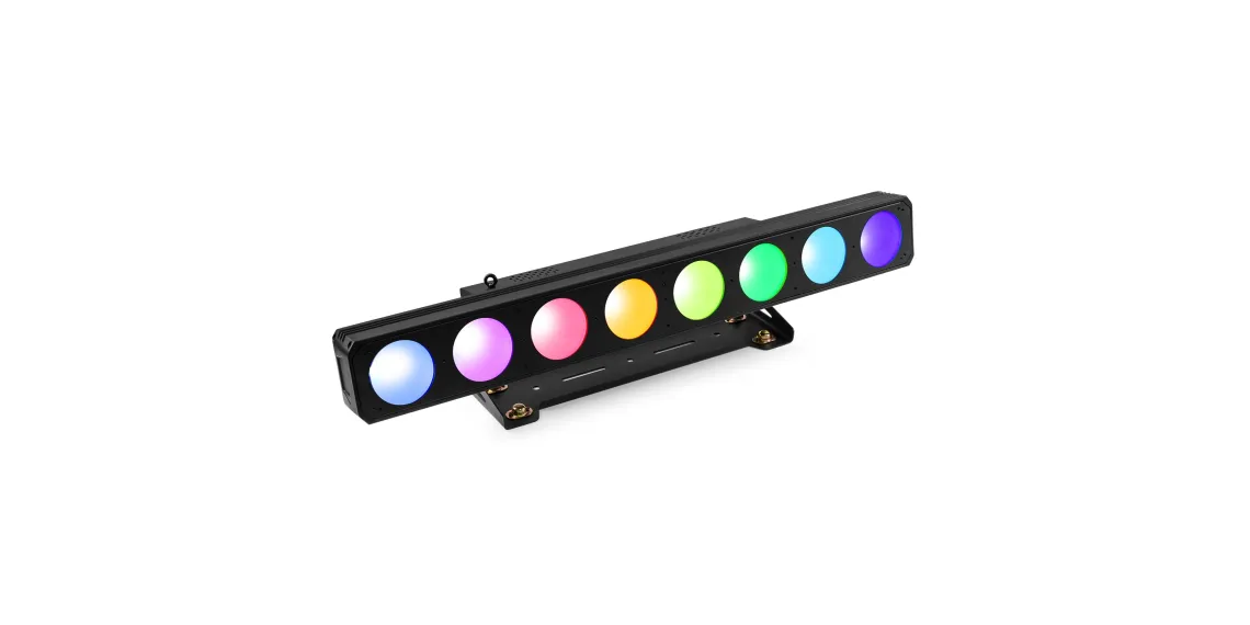 Der LUCID ist mit 4 oder 8 Hochleistungs-COB-LEDs ausgestattet, die entweder für Wash-Effekte oder als pixelgesteuerte Leiste verwendet werden können. Mit der neuesten COB-Technologie ist es möglich, makellose RGBW-Farbmischungen zu erzeugen. Der LUCID kann entweder im Standalone-Modus verwendet werden und seine voreingestellten Programme in einer bestimmten Geschwindigkeit ausführen oder dank des eingebauten Mikrofons der Musik folgen. Für die volle Kontrolle können Sie aber auch einen DMX-Controller verwenden, um diesen Lichteffekt in Ihre Shows zu programmieren. Der LUCID kann auf dem Boden platziert werden, indem die Halterung umgedreht wird, was ihn sowohl für Festinstallationen als auch für den Verleih ideal macht.