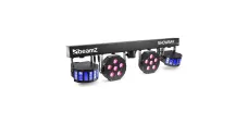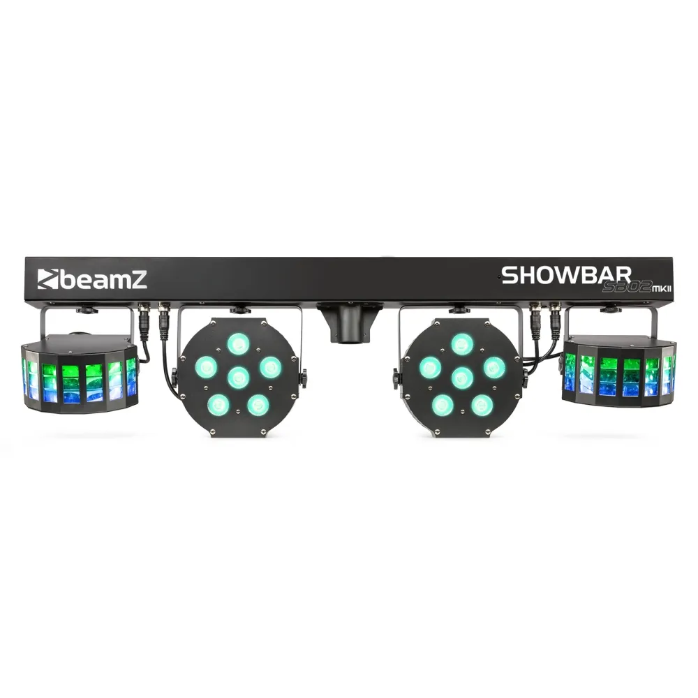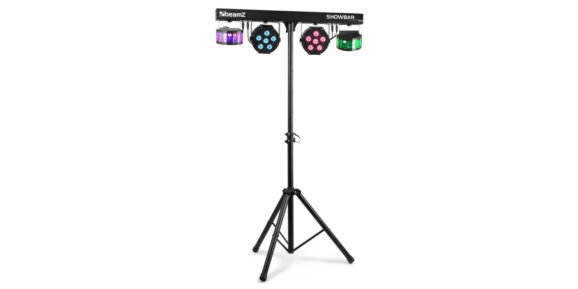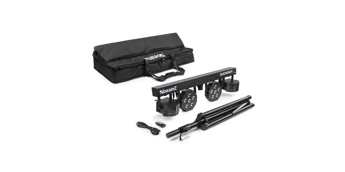 Das SB02 ShowBar-Kit ist eine Showbar mit wiederaufladbarer Lithiumbatterie, die 4 Effekte enthält, die auf einer DMX-T-Bar montiert sind. Sie ist mit 2 LED-Derby-Effektlichtern und einem Paar Hochleistungs-LED-PARs ausgestattet, die eine atemberaubende Lichtshow garantieren. Die T-Bar kann im Automatikmodus, im Sound-aktivierten Modus oder im 6/30-Kanal-DMX-Modus gesteuert werden und ist außerdem mit einem IR-Sensor zur Fernsteuerung per Fernbedienung ausgestattet. Die SB02 ShowBar kann auf dem mitgelieferten Ständer montiert werden und die Kapazität der Batterie lässt sich einfach an der Batterieanzeige ablesen.