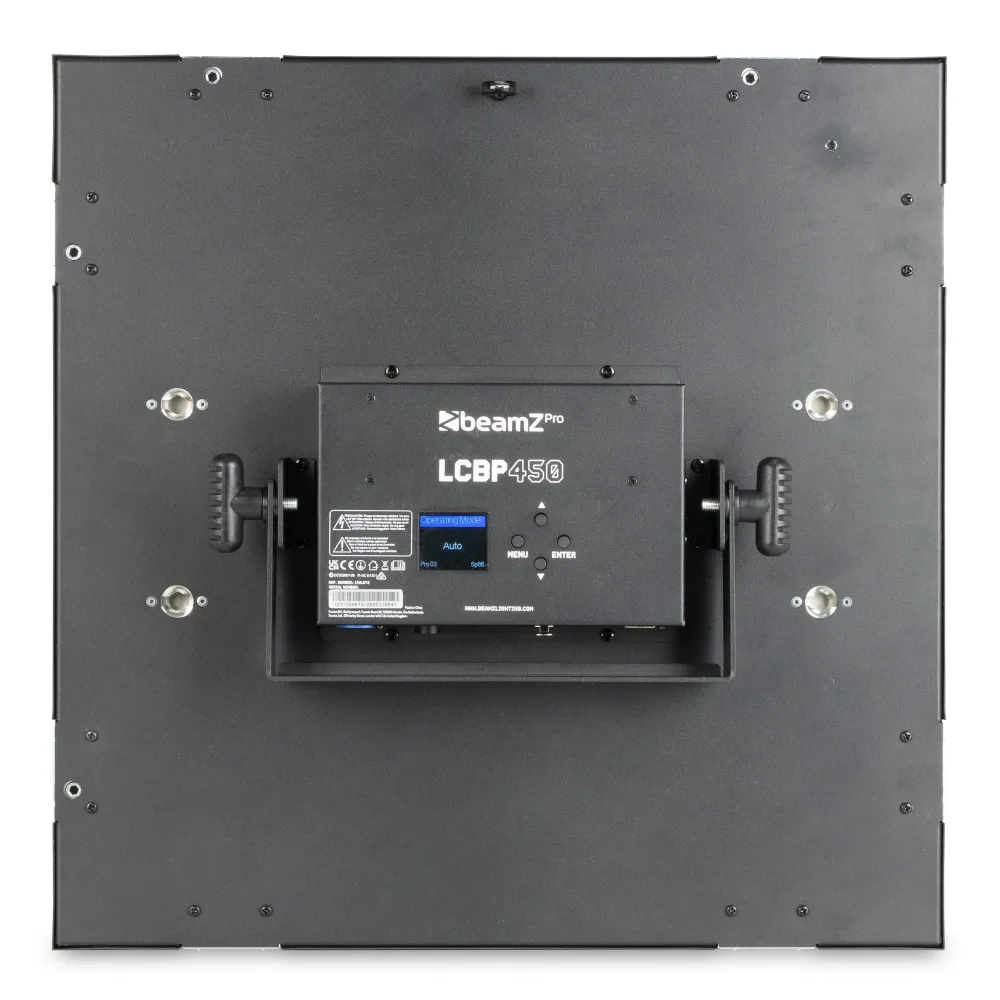 Die LCBP450 ist ein beeindruckendes Hybrid LED-Panel mit 25 leistungsstarken 10 W RGBW-LEDs hinter Präzisionslinsen und 200 RGB-SMD-LEDs für einen atemberaubenden Hintergrundbeleuchtungseffekt. Dank anpassbarer Muster und dynamischer Lauflichteffekte sorgt diese Leuchte für ein visuelles Spektakel auf jeder Veranstaltung. Im Standalone-Modus stehen vorprogrammierte Shows zur Verfügung, die automatisch ablaufen oder auf Geräusche reagieren. Der RGB-Modus ermöglicht es Ihnen außerdem, eigene Farbkombinationen für die Hintergrundbeleuchtung zu erstellen. Der integrierte Stromanschluss erleichtert die Reihenschaltung mehrerer Geräte und optimiert so die Einrichtung und das Kabelmanagement.