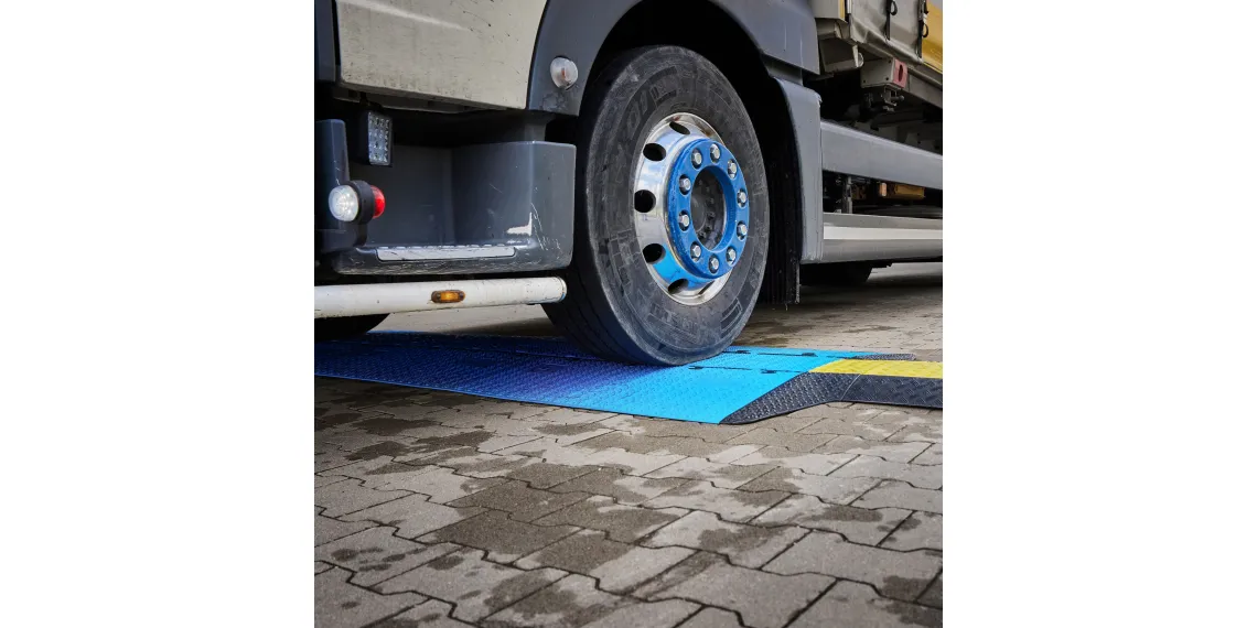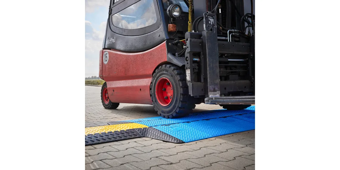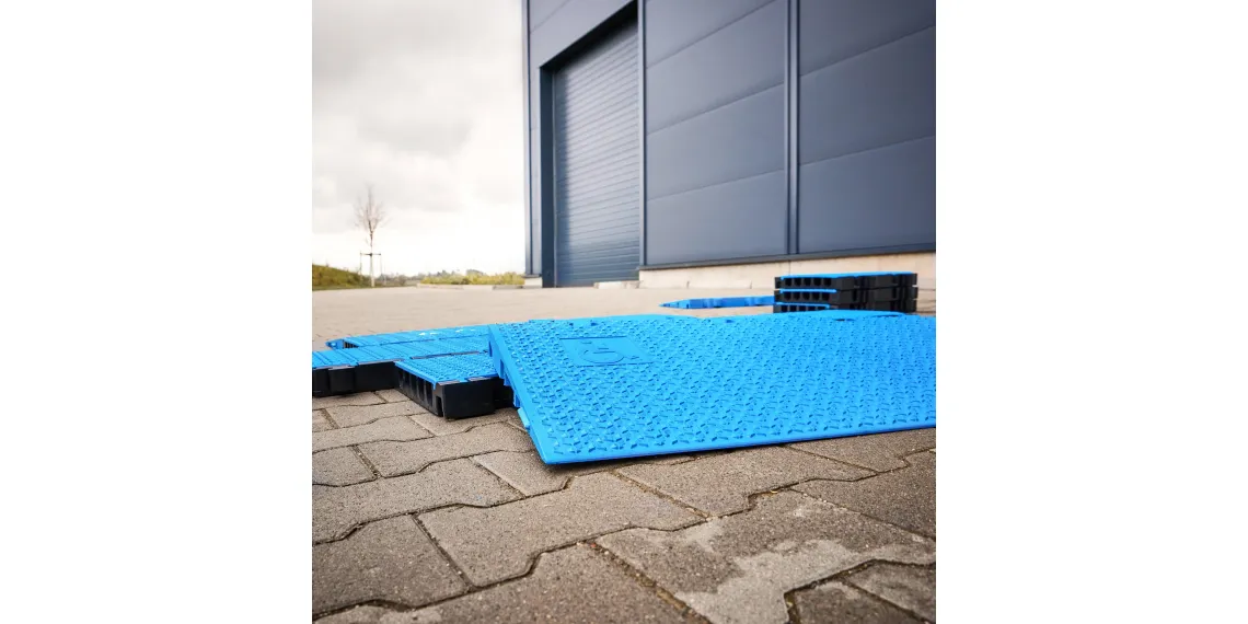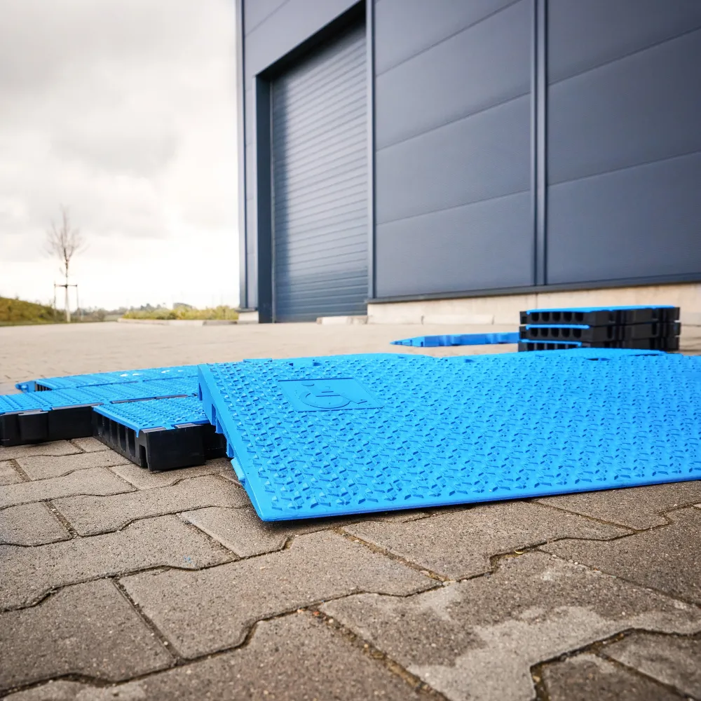 - Hochbelastbare Rampe mit 3D-Lasergrip Anti-Rutsch-Oberfläche aus blauem, recycelbarem Polyurethan