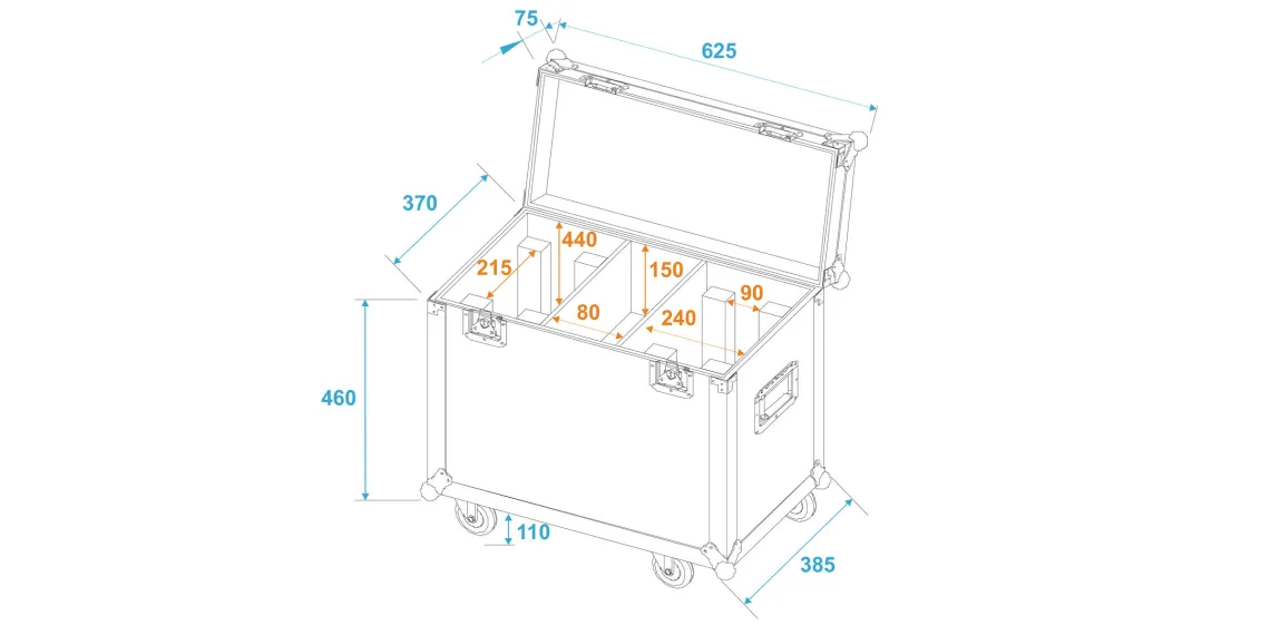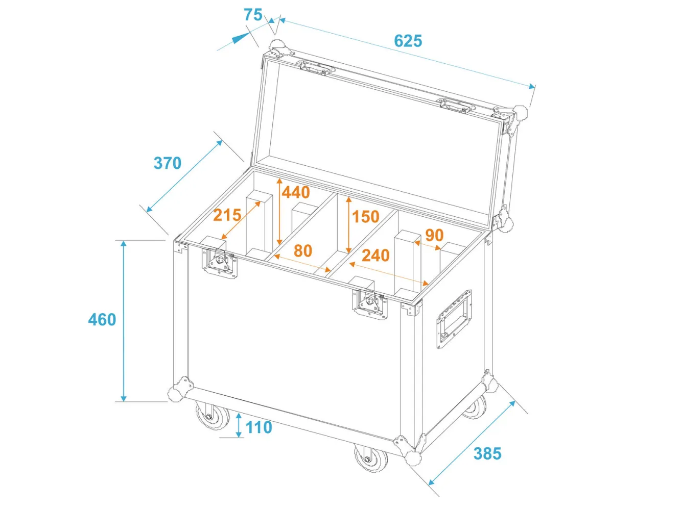 - 1x Roadinger Flightcase für 2x TMH-S180 Spot Moving Head mit Schaumstoffpolsterung und Rollen