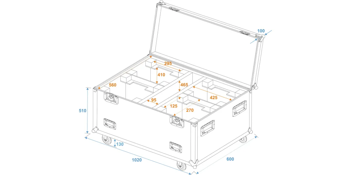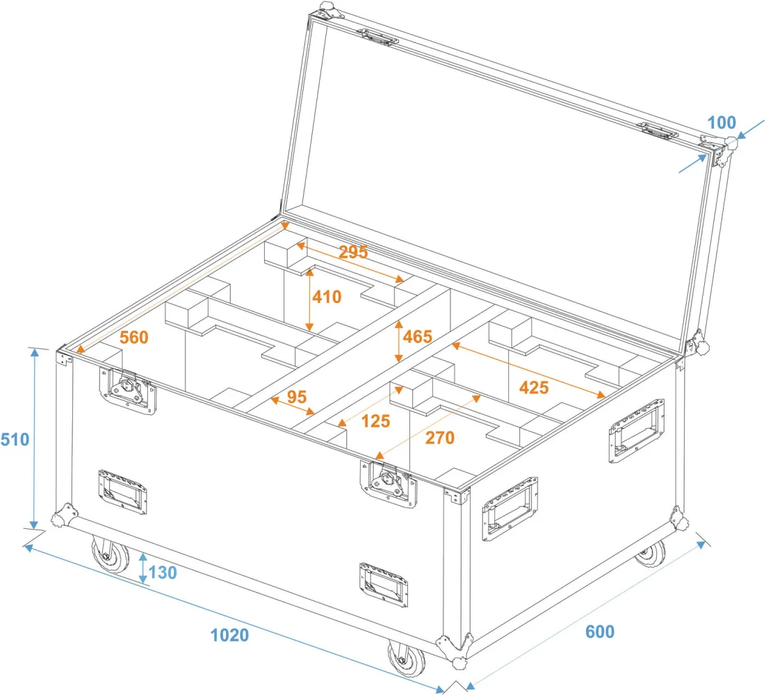 - 1x Roadinger Flightcase für 4x TMH-S180 Spot Moving Head mit Schaumstoffpolsterung und Rollen