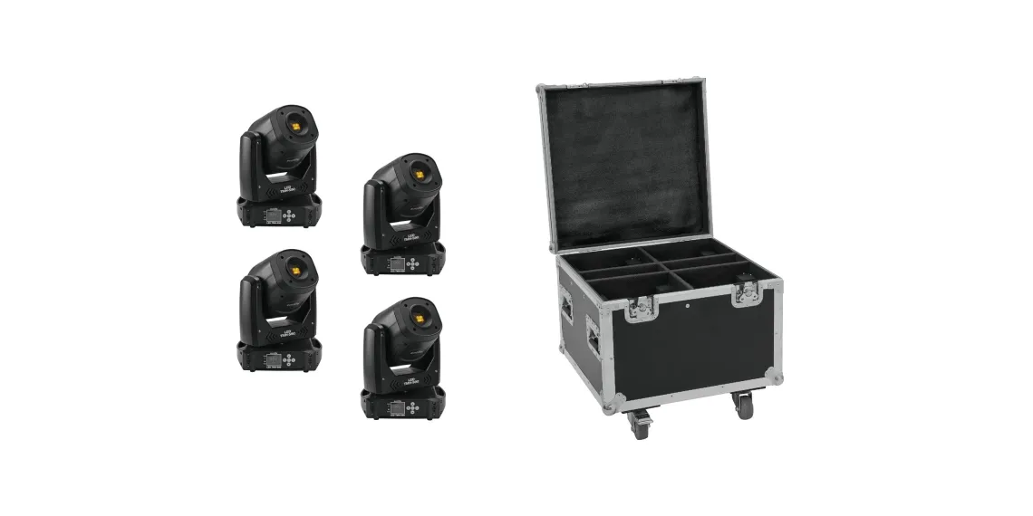 4x LED-Moving-Head Spot inklusive Flightcase mit Rollen