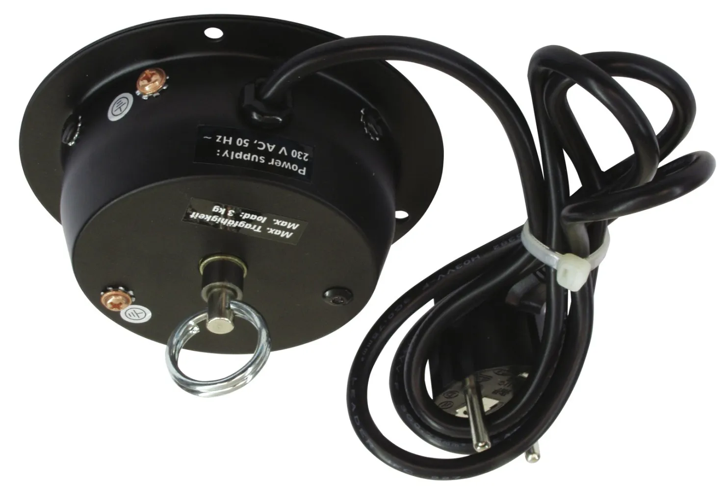 - 1 x Spiegelkugel, 1 x Motor, 1 x Bedienungsanleitung, 3 x Schrauben, 1 x Kette