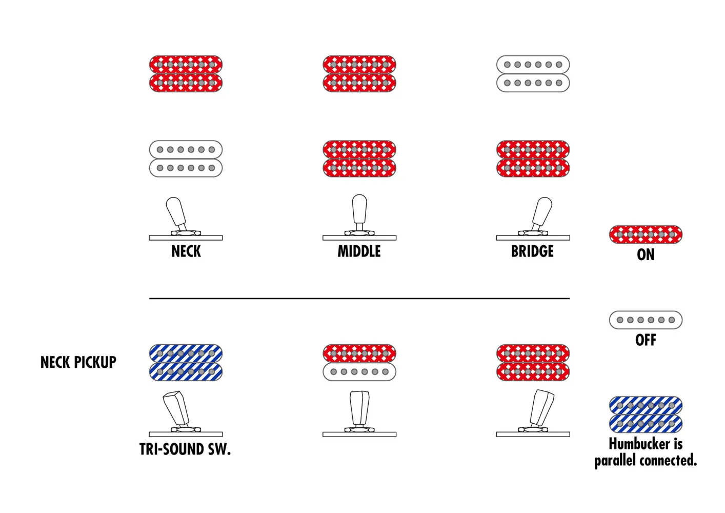 - Tri-Sound Schalter (für Halstonabnehmer)