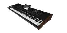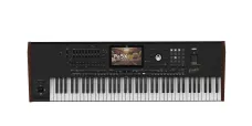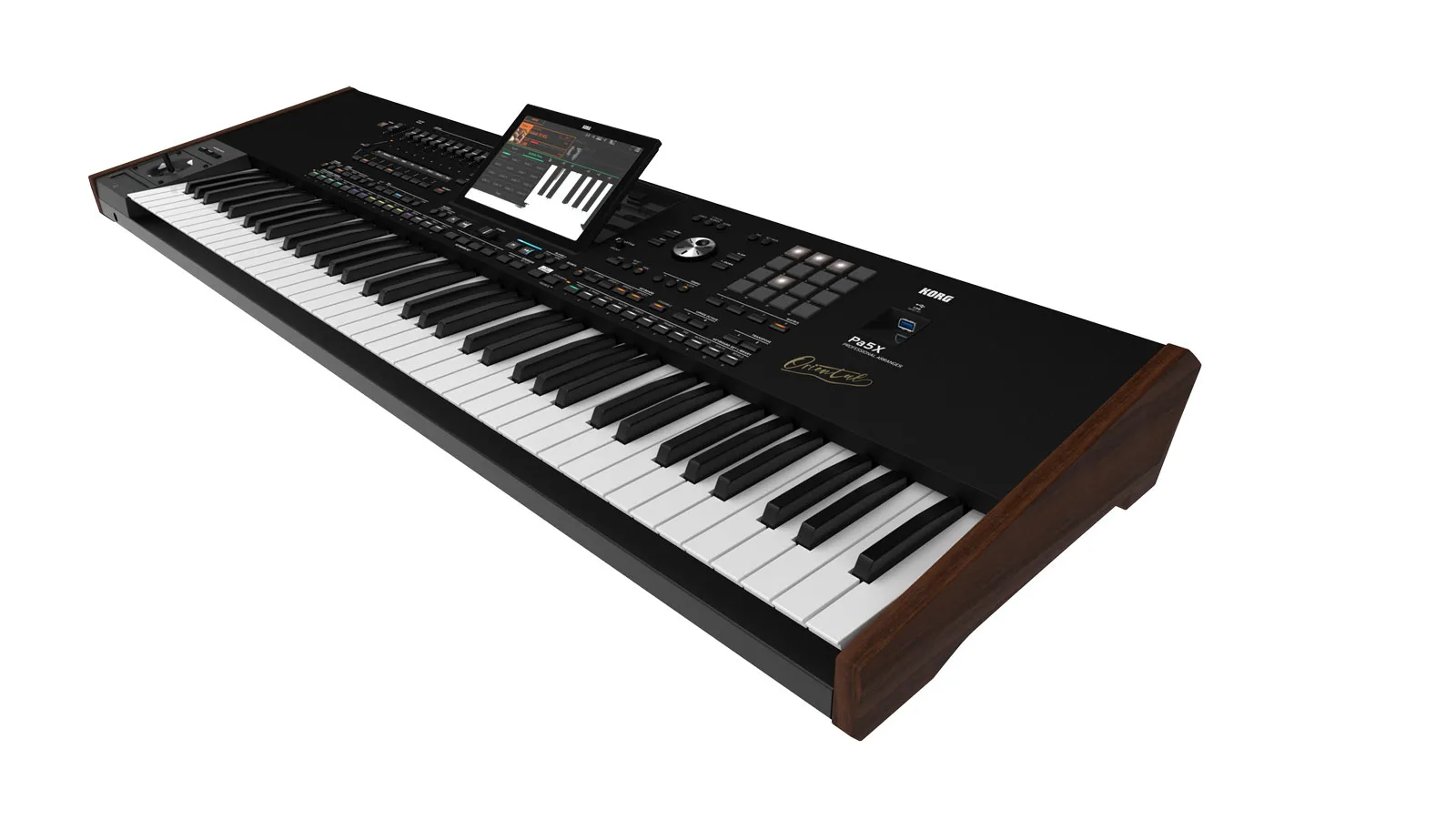 Das Keyboard ist hochwertig verarbeitet und versprüht zeitlose Eleganz: Holzseitenteile schmiegen sich an ein stabiles, schwarzes Aluminiumgehäuse. Die Echtzeitkontrolle vieler Parameter geht durch ein zusätzliches Strip-Display und die dazugehörigen Taster und Fader leicht von der Hand, denn das Display zeigt immer den Wert des jeweiligen Parameters an. Eine große Akkord-Sequenz-Library lädt zum Jammen ein, das 8 Zoll große, neig- und arretierbare Touch-Display in Tablet-Qualität bildet alle Akkorde, Texte und auch (Midifile-) Noten in hochauflösender Darstellung ab.