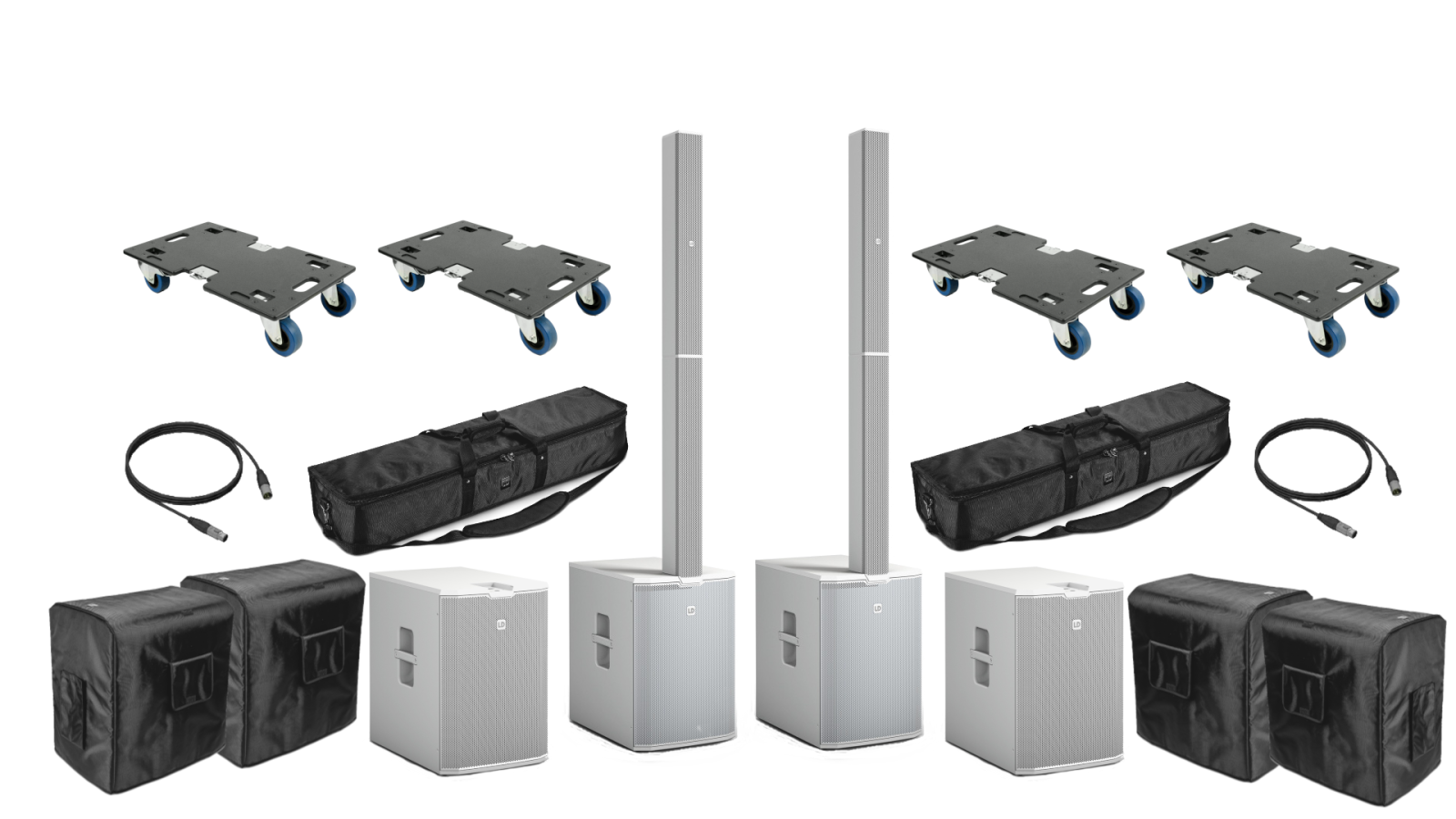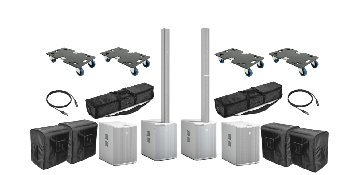 - Cardioid-Säule zur kontrollierten Abstrahlung in den Tief-Mittelfrequenzen sowie Cardioid -Subwoofer-Anwendung (mit zweitem Subwoofer)