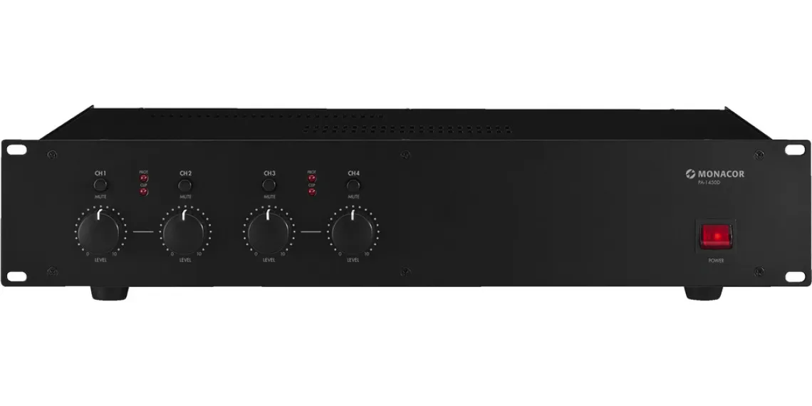 - Anschlüsse: 4 x XLR-Eingang, sym., 4 x Cinch-Eingang, Schraubkontakte (Lautsprecher)