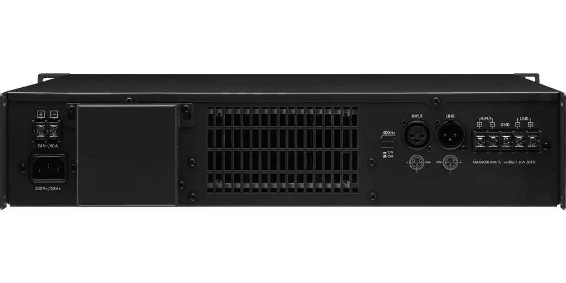 - Anschlüsse: XLR/Schraubkontakte (Eingänge), Schraubkontakte (Lautsprecher)