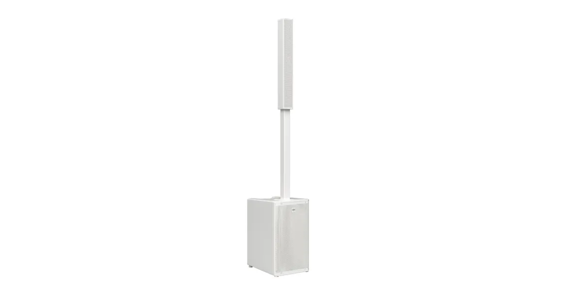 Das System besteht aus einem 12"-Subwoofer und einer Säule mit 6x 3"-Fullrange-Lautsprechern sowie einem 1,75"-Kompressionstreiber, wodurch ein ausgewogenes Klangbild mit klaren Höhen, präzisen Mitten und druckvollem Bass entsteht. Das 120° × 40° Waveguide sorgt für eine breite und gleichmäßige Schallverteilung.