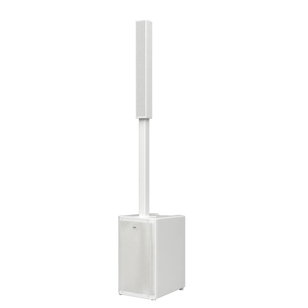 Das System besteht aus einem 12"-Subwoofer und einer Säule mit 6x 3"-Fullrange-Lautsprechern sowie einem 1,75"-Kompressionstreiber, wodurch ein ausgewogenes Klangbild mit klaren Höhen, präzisen Mitten und druckvollem Bass entsteht. Das 120° × 40° Waveguide sorgt für eine breite und gleichmäßige Schallverteilung.