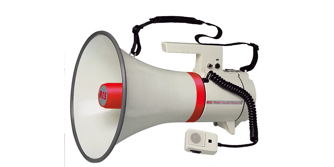 Sehr stabiles Hochleistungs-Megaphon mit max. 40 W. Es ist besonders für den robusten Einsatz im Sicherheitsbereich geeignet.